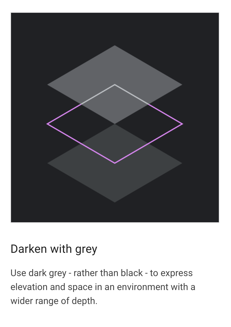 하지만 OLED라고 하여도 True Black #000000이어야 픽셀이 완전히 꺼지게 되는데 머터리얼 디자인에서 추천하는 다크 테마 배경 색상은 #121212이며 실제 디자이너도 트루블랙을 사용하는 경우가 적다.