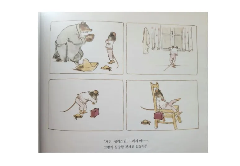 비가 안 오는 셈 치고 소풍을 떠나는 곰아저씨와 셀레스틴.