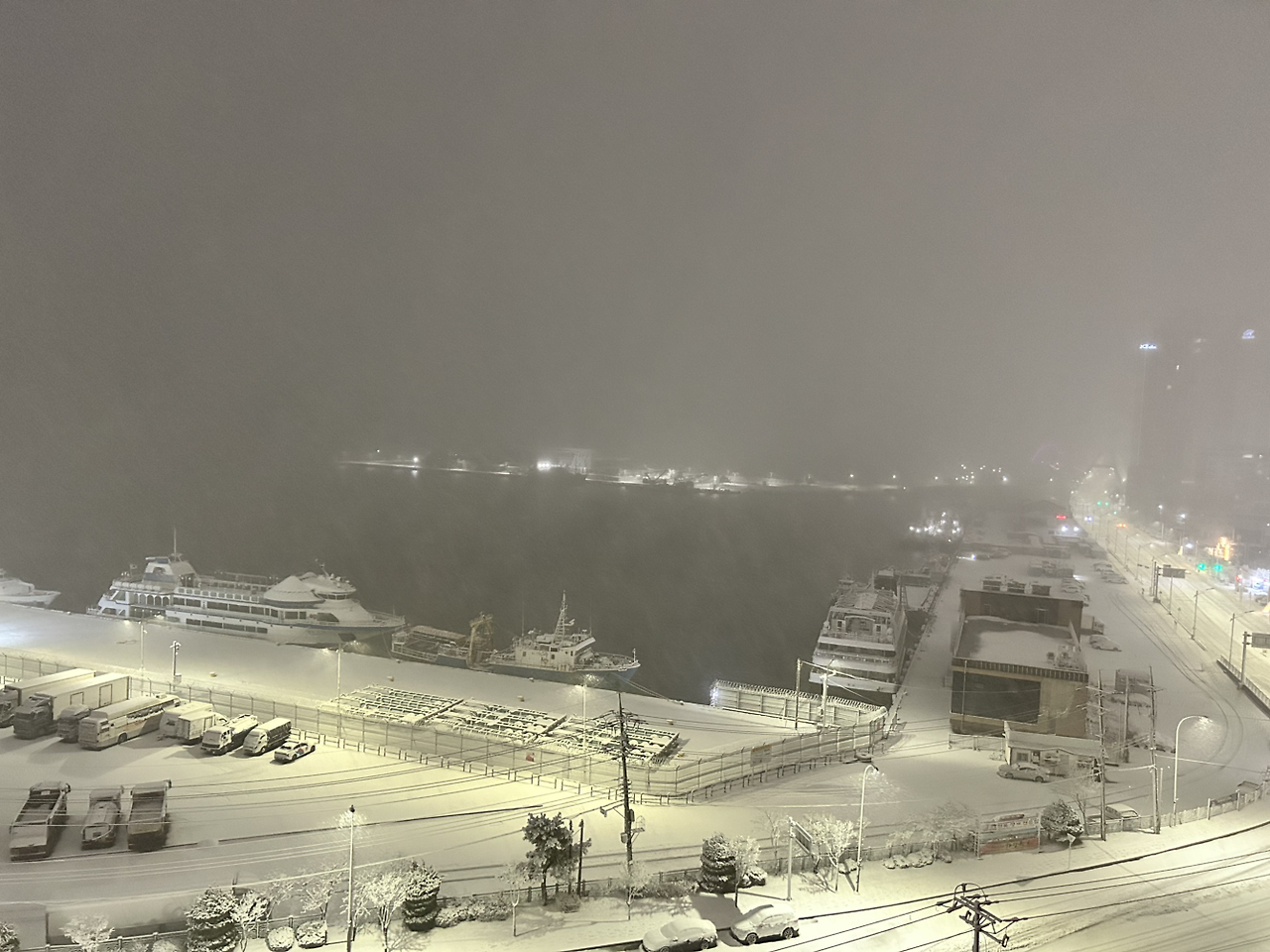 어제 늦은 밤부터 ‘서설’이 강풍과 함께 대차게 내렸다.산맥동편 마을을 중심으로 더더욱. 양력 삼월 초이튿날에 서설이라니. 올겨울(이라 쓰고 지난겨울이라고 해야 할 판이다) 내내 눈이라곤 구경도 못해본 이곳 항구 마을이다. 그러더니 한 번에, 길거리에 세워진 자동차 위에 쌓인 눈을 보니, 좋이 30cm는 되는 눈이 내렸다.