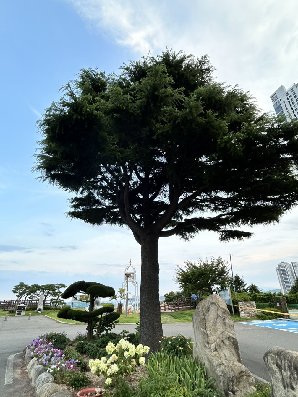 "신부님, 저 나무 이름이 뭔지 혹시 아시는지요? 웬 여행객 자매 하나가 전화로 문의해 왔었습니다. 나무가 너무 예뻐 인스타에 올리려 하는데 이름을 모르겠다는 거예요."