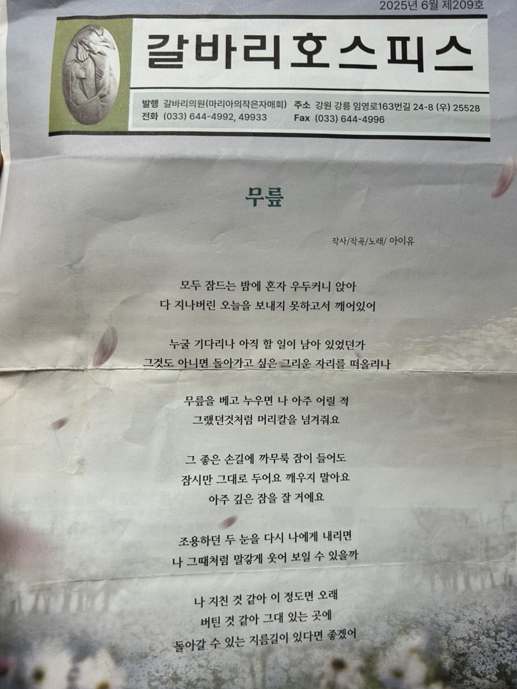 얼마 전, 스물아홉의 손주(아들)를 사고로 잃은 할머니와 그 어머니(며느리)가 피눈물을 흘리며 연이어 미사를 참례했었다. 달리 위로를 드릴 수 있는 방법을 몰라 직권으로 무료 미사예물을 넣어 드렸다. 공황 상태의 그들 할머니와 며느리는 경제적으로도 많이 힘든 듯했다.