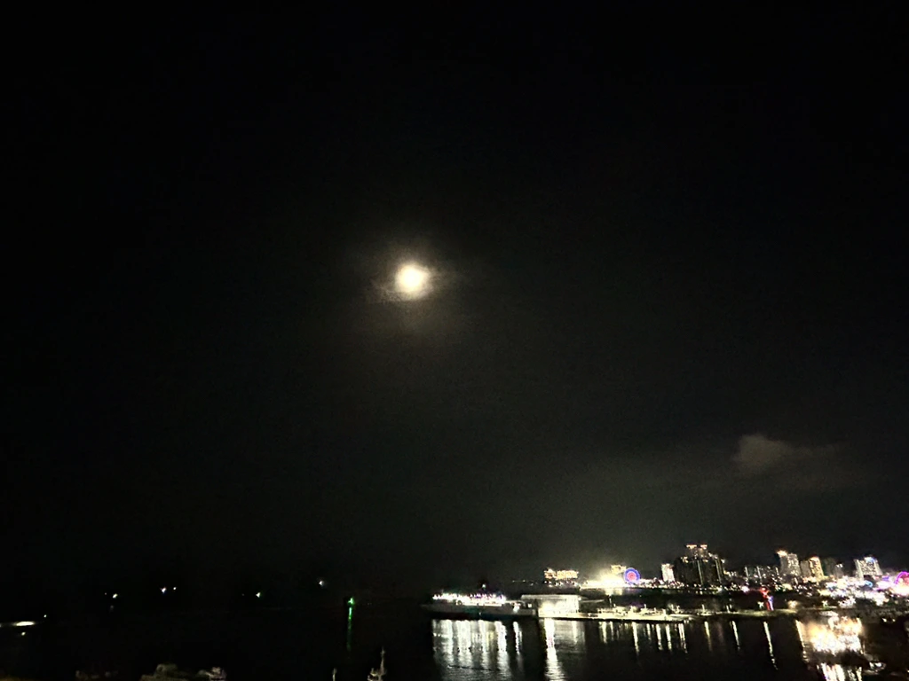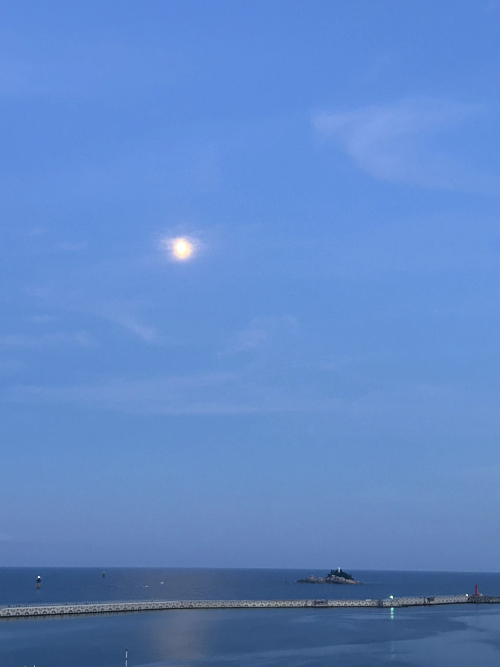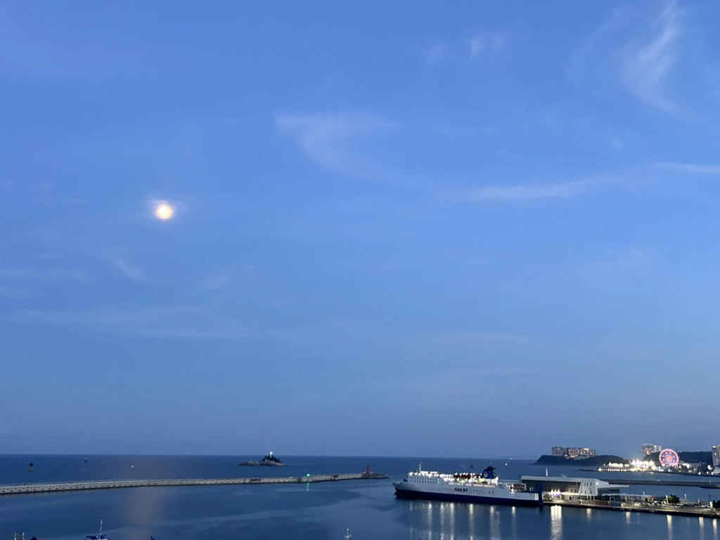 속초중앙시장에서 마눌 심부름을 하는 중에 다행히 구름 사이로 햇볕이 새어 나왔습니다. 저녁이 되니 제법 하늘이 열립니다. 덕분에, 완벽함에는 약간은 부족하지만, 보름달(Full Moon)에 가까운 밝은 달이 바다 위에 걸렸습니다. 조도와 유람선과 보름달의 조화는, 이곳 동명항의 양보할 수 없는 천연과 인공의 걸작품입니다. 무모한 인간이 난리만 일으키지 않는다면 이 모습은 반영구적으로 유지될 것입니다.