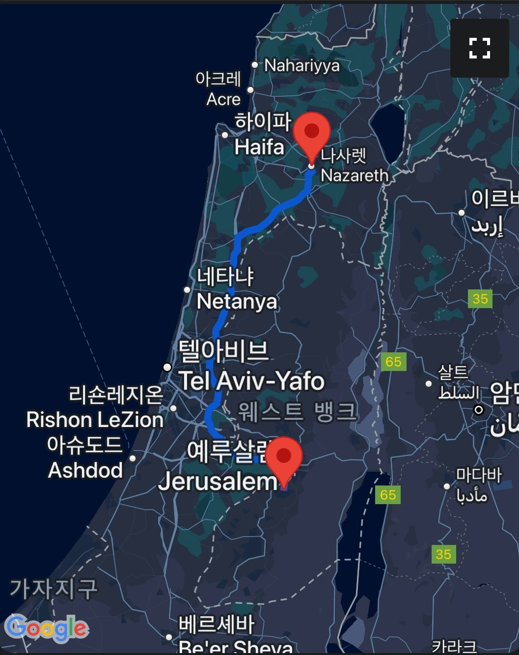 갈릴리 지역 나자렛(Nazareth)에서 예루살렘 남쪽 베들레헴(Bethlehem)까지는 지금의 고속도로 기준으로도 약 160km에 이르는 먼 길이라고 합니다. 임신한 마리아와 요셉이 이 머나먼 길을 삭풍(성서학자들 연구로는 10월~11월 경)을 뚫고 지나기에 2000년 전 당시의 사막은 얼마나 삭막했겠으며 산악지형은 또 얼마나 험준했겠습니까. 그 고단한 여정은 노랫말에 '얼어붙은 팜파스, 엉겅퀴와 쐐기풀, 쉴 곳도 머무를 주막도 없는' 등등으로 절절히 스며있습니다. 요셉과 마리아는 고통과 역경이 가져올 만도 한 절망을 포기하지 않는 '희망(esperenza)'으로 극복하여 마침내 베들레헴에 도착합니다. 메르세데스 소사는 이를 노래의 마지막에 'Jose y Maria!'로 웅변적으로 표현하고 있습니다.