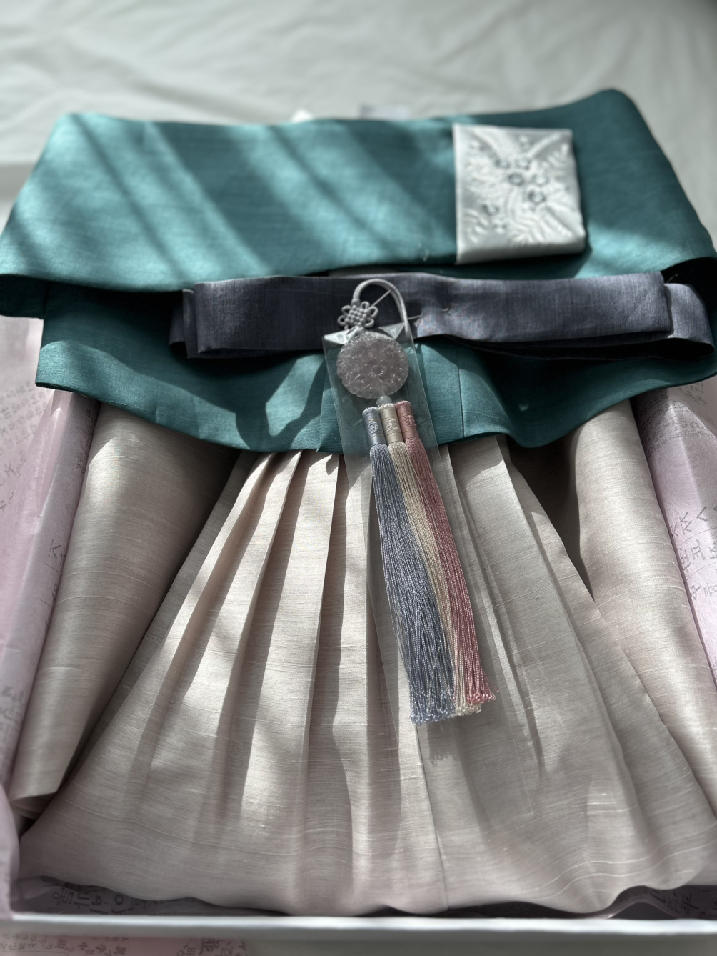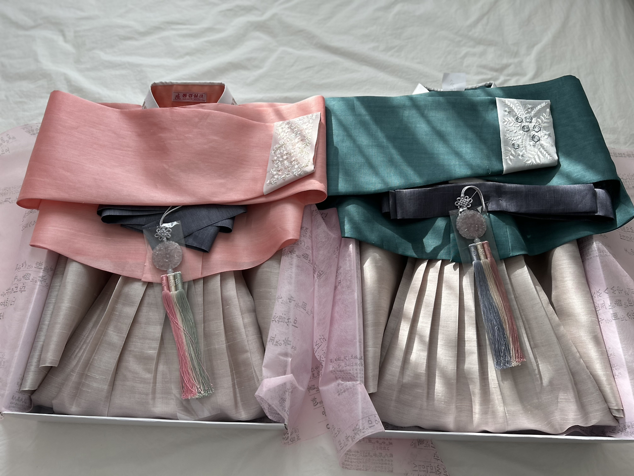 지난주엔 마눌과 함께 둘째 혼례식 때 입을 옷을 장만했다. 마눌은 안사돈들끼리 입을 한복을 오로지 자신의 감각만으로 색깔과 디자인, 소재 등 일체를 결정하고는 한복집에 맡겼었다. 마눌 것은 분홍색, 사돈 것은 푸른색 계열로 선택했더랬다. 원하는 한복을 제대로 마련할 수 없는 미국 현지 사정을 감안한 마눌의 자연스럽고도 합리적인 선택이었다. 완성된 것을 보고는 지극히 만족스러운 눈치다. 마눌은 이를 사진으로 찍어 둘째에게 보내고는 안사돈(시어머니)께도 잘 전달해 드리라고 당부했다. 둘째는 이내 시어머니의 회신을 대신 보내왔다. 감사하다고. 한복이 '폭싹' 예쁘다고. ’알흠다운‘ 사돈 지간이다.