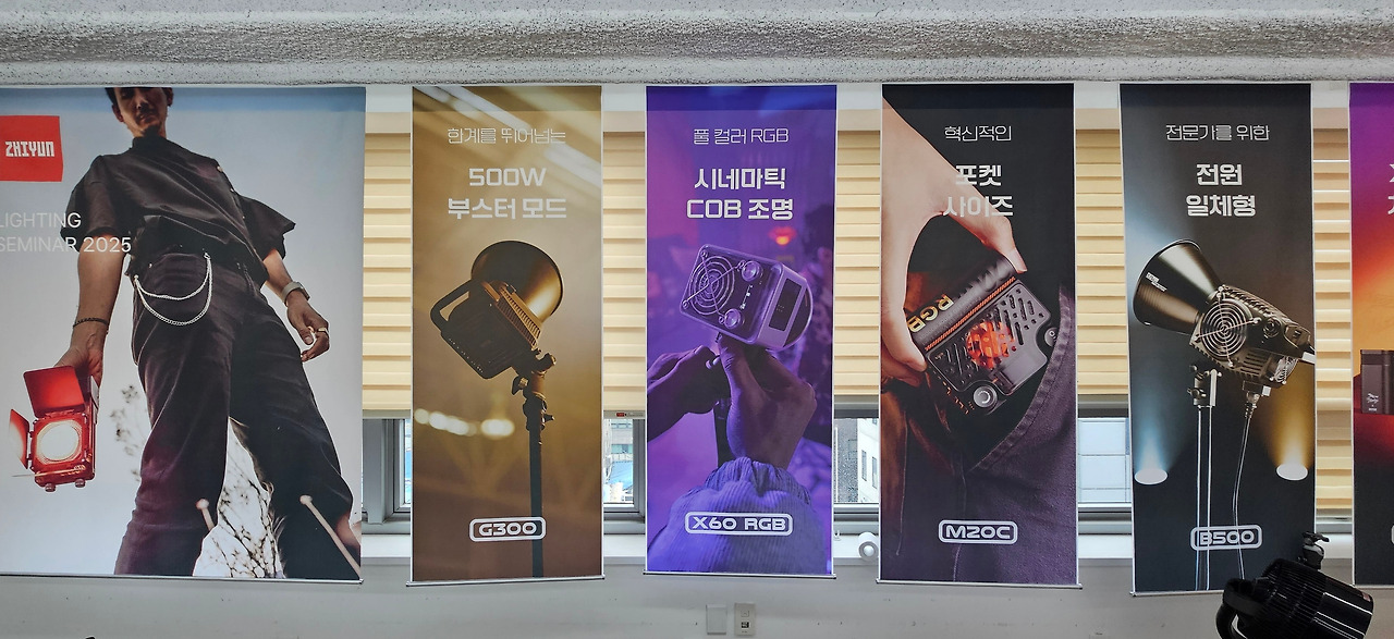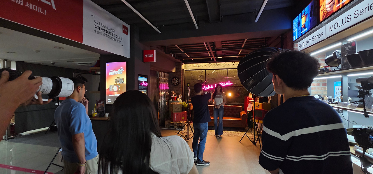 이번 세미나는 새로 출시된 X100 RGB 조명과 더불어 기존 X100과 X60을 사용해 볼 수 있었고, 그 외에도 미리 세팅된 G300 등 다양한 조명을 이용해 연출할 수 있는 세팅들을 경험해 볼 수 있어 좋았다.
