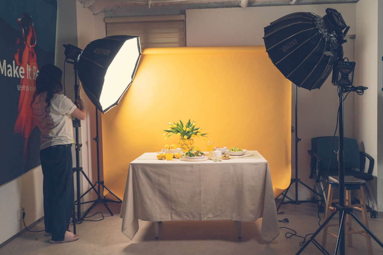 인물을 촬영하기에도 충분하니 정물이나 음식 같이 더 작은 피사체들을 촬영하는 것에는 더더욱 문제 될 것이 없었다. 세기 P&C에서는 인물사진 네 가지 컨셉 촬영 외에도 정물 사진 촬영 세트 하나, 음식 사진 촬영 세트 하나를 각각 준비해 주셨는데 지윤에서 발매한 조명들로 여러 케이스가 소화 가능함을 보여주기 위한 세팅들로 보였다.