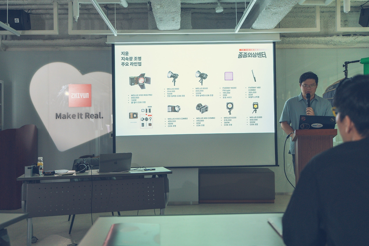감사하게도 세미나 참가자로 선정된 덕분에 평소 궁금했던 지윤의 지속광 조명인 X100 및 X60 시리즈를 직접 써볼 수 있었다. 사실 X100과 X60 조명은 발매되던 시점부터 진작 알고 있던 조명이었다. 당시에도 작으면서 뛰어난 광량을 가진 지속광 조명으로 호평이 자자했다. 휴대성 및 지속 시간도 괜찮은 편인 데다 매력적인 광원 연출이 가능하다는 점에서 눈길을 끌었고 그때 나는 내게 조명이 필요한지를 냉정하게 되물으며 사고 싶은 마음을 억눌렀던 기억이 난다. 발매된 지도 어느덧 2년쯤 지난 시점이라 이번 세미나가 열린 취지가 무엇인지 궁금한 마음이었는데 최근 들어 X100 시리즈의 RGB 버전 조명이 새로 발매되었기 때문이라는 것을 세미나에 참여하면서 알게 되었다.