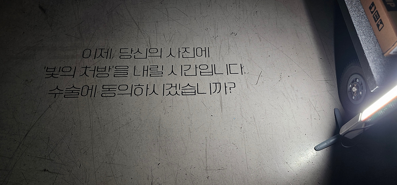 재미있는 점은 이번 세미나가 단순 조명을 체험해 보는 자리인 것을 넘어서 명확한 컨셉을 가지고 있었다는 점이다. 이번 지윤 조명 세미나는 중증외상센터라는 넷플릭스 드라마 컨셉을 차용해서 적절한 빛(조명)을 처방해 준다는 컨셉으로 준비되어 있었다. 세미나 장소에 가기 전에는 '컨셉이라고 해봐야 조명이 메인인데 뭐 얼마나 준비하겠어?'라고 생각했던 것이 솔직한 마음이었지만 막상 도착해 보니 일관되게 컨셉을 맞추기 위한 디테일이 상당해서 무척 놀랐다. 관계자분들이 진심을 다해 이번 세미나를 준비했다는 사실을 여실히 느낄 수 있었고, 준비된 디테일이 무척 감탄스러웠던 부분이기도 하다.