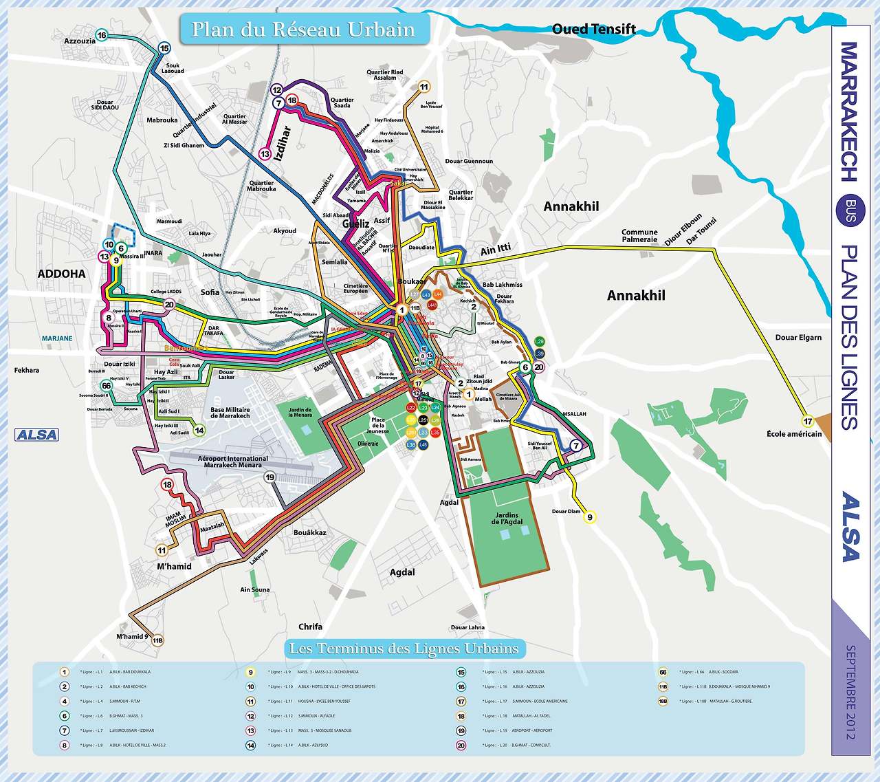 여행자들의 필수 앱이자 전지전능하신 구글 맵님이시지만 애석하게도 마라케시 대중교통은 지원하지 않으시니, 익숙한 그 이름 알사 버스 홈피에서 노선도(http://alsa.ma/en/marrakech)를 폰에 저장해 다니면 유용하다! 곧 이야기하겠지만 모로코에서 데이터를 자유롭게 이용하는 것은 만만치 않은 일이 될 수도 있기에 만일을 위하여 오프라인으로도 볼 수 있도록 준비하는 것을 추천한다.