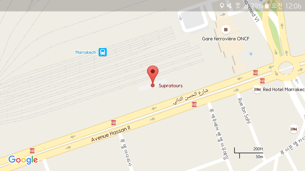 수프라투어 버스 터미널은 마라케시 기차역 옆에 위치해있다. 처음에 역 안으로 들어가서 헤매다 경비원에게 물었더니 분명 역 안(Inside)에 있다고 해서 매표소로 갔더니 역 안에서는 기차표만 판다고 밖으로 나가야 한다고 했다. 결론은 역에서 큰 길을 따라 더 가야 한다는 것이다.