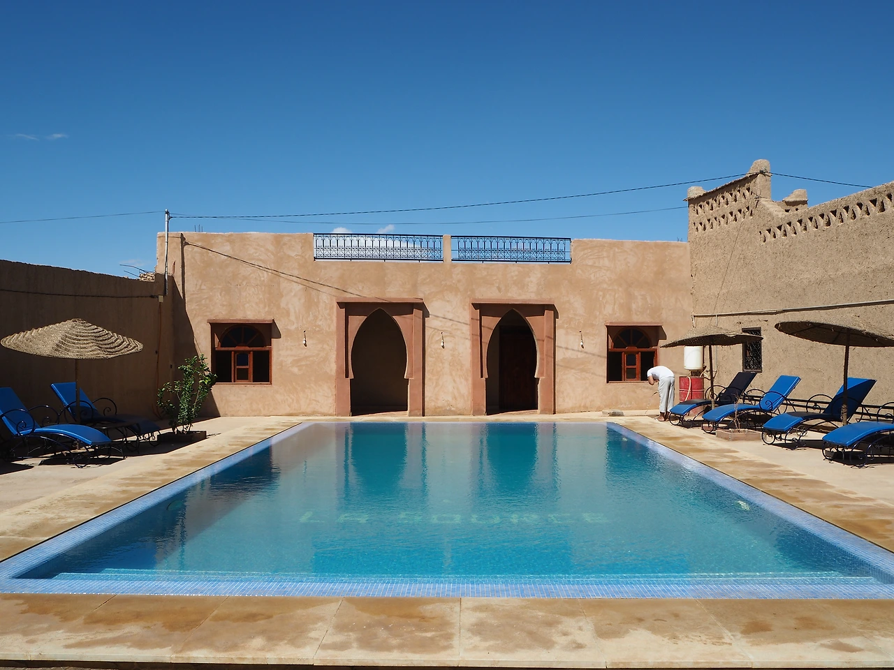 내가 머무른 Auberge La Source와 그 옆에 붙어있는 Auberge l'Oasis는 마을의 가장자리에 위치하여 사막과 바로 맞닿아있다. 이 두 곳 외에도 이 마을에는 사막 투어를 하는 숙소가 여럿 있어 주변에서 쉽게 낙타를 볼 수 있다.