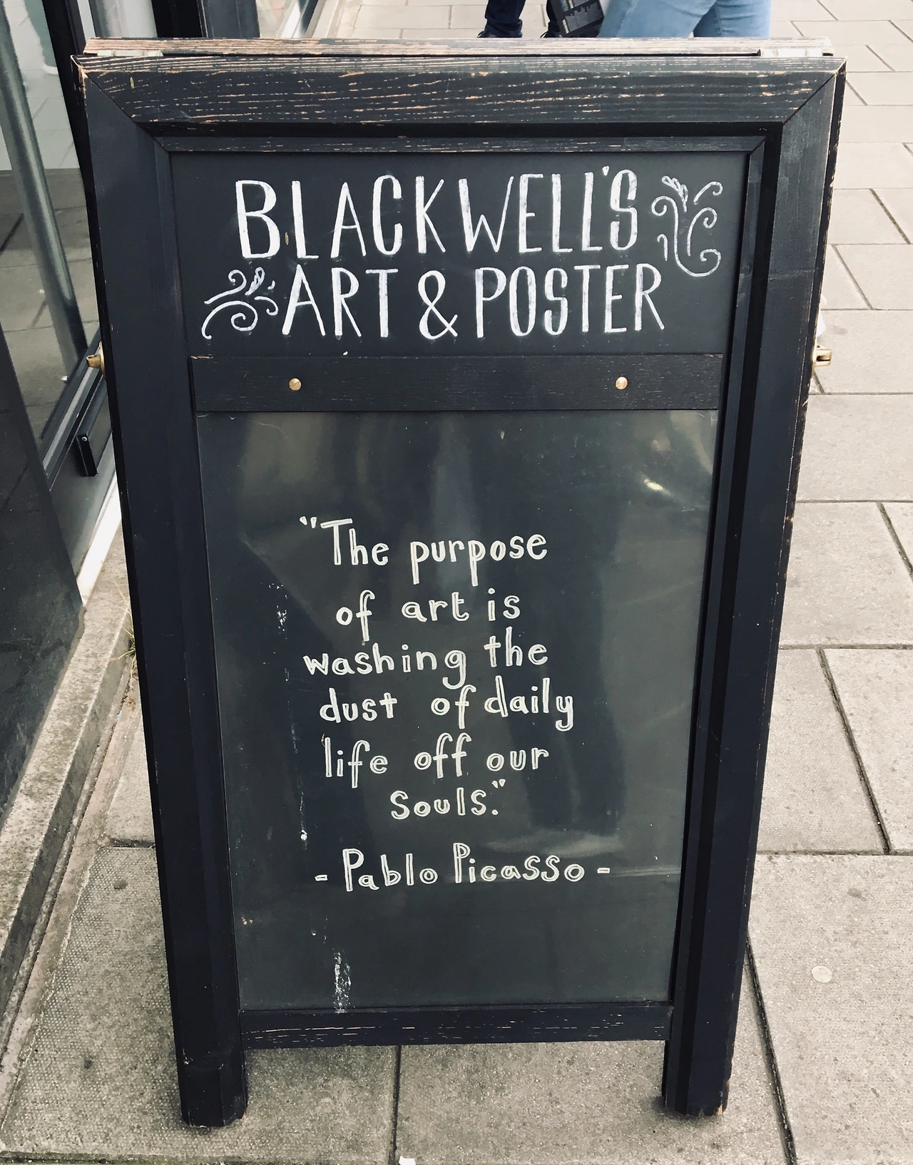 영국 옥스퍼드 여행에서 발견한 문구. "예술의 목적은 우리의 영혼에서 일상의 먼지를 씻어내는 것이다."