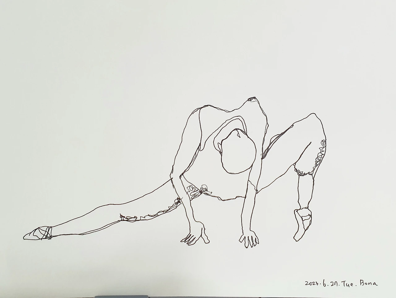 발레리노의 사진을 보고 그린 컨투어링 드로잉(5분 소요)