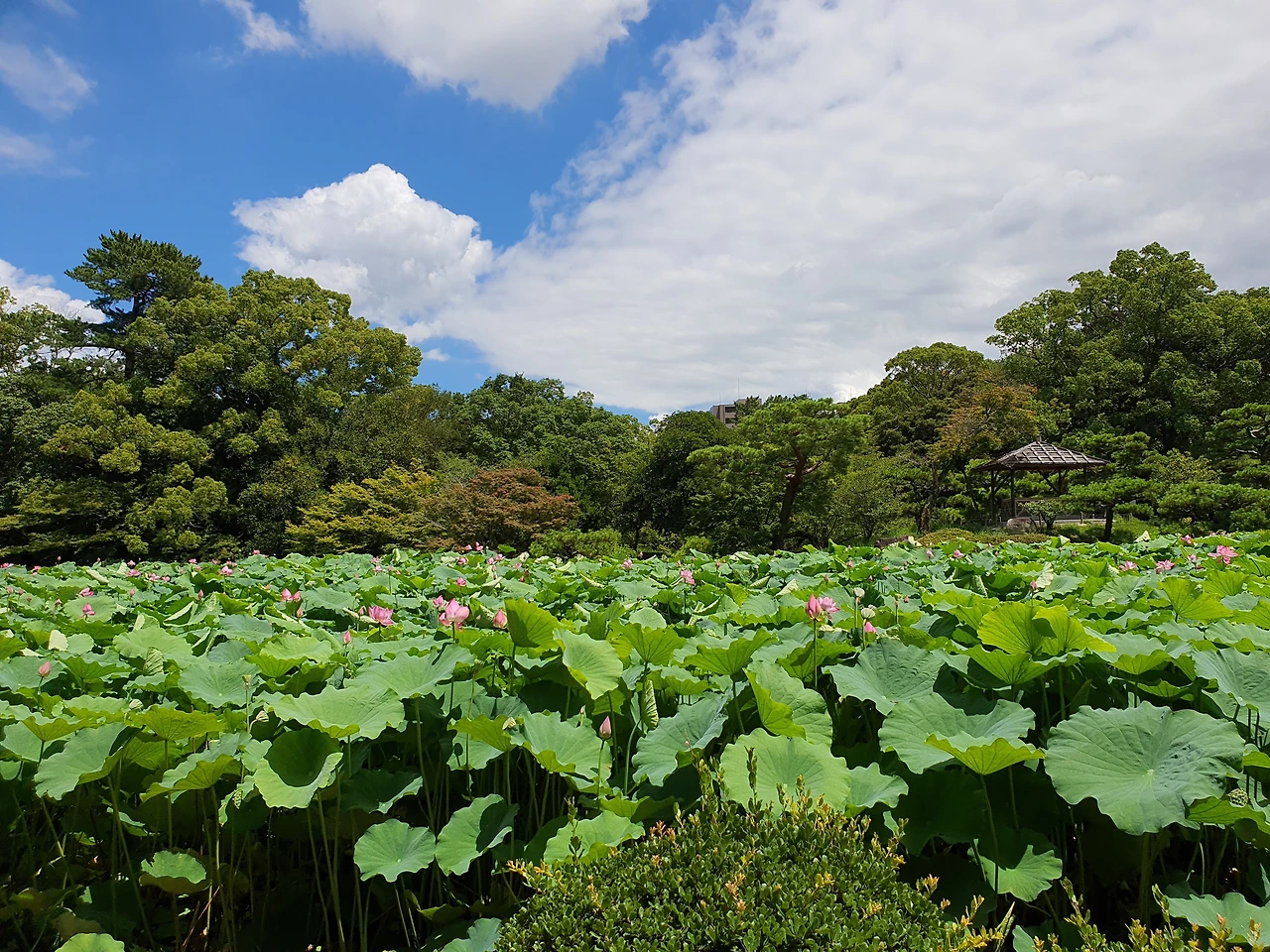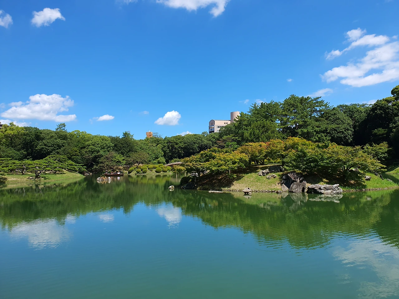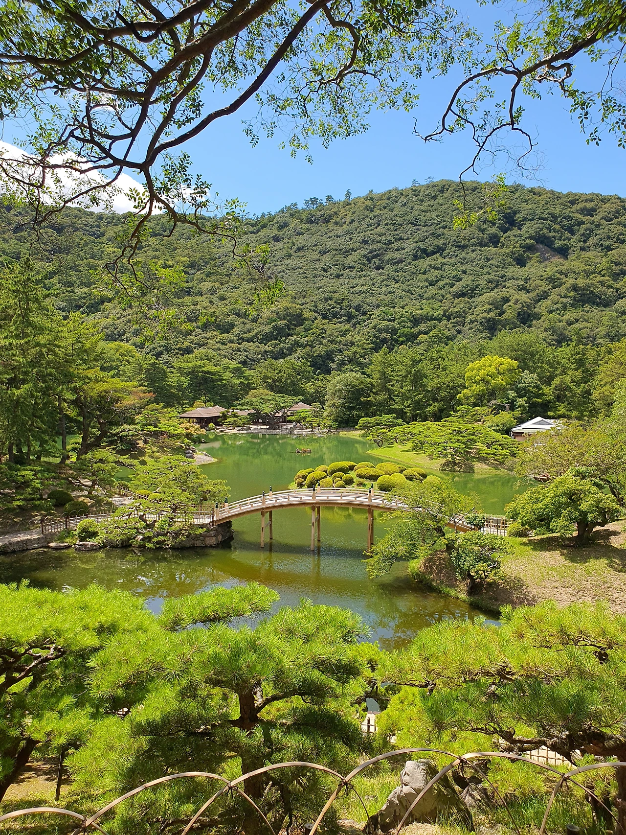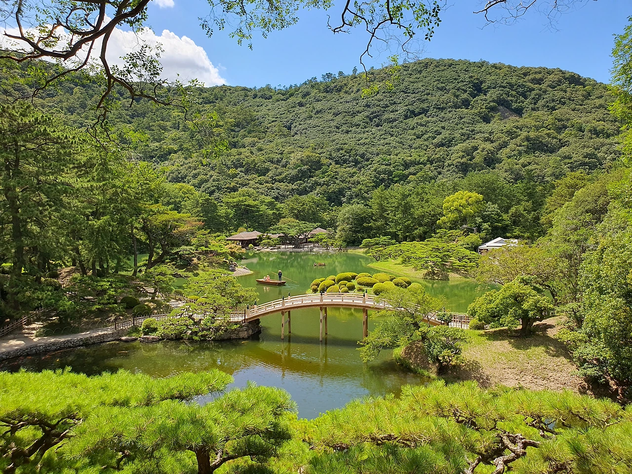 우동을 먹고 다카마쓰에 오면 꼭 가야 한다는 리쓰린 공원에 갔다. 폭염경보 수준의, 태양이 작열하는 오후 1시의 다카마쓰는 그야말로 숨쉬기도 버거울 정도로 더웠다. 양산은 필수. 하지만 하늘은 왜 이리도 파란지.