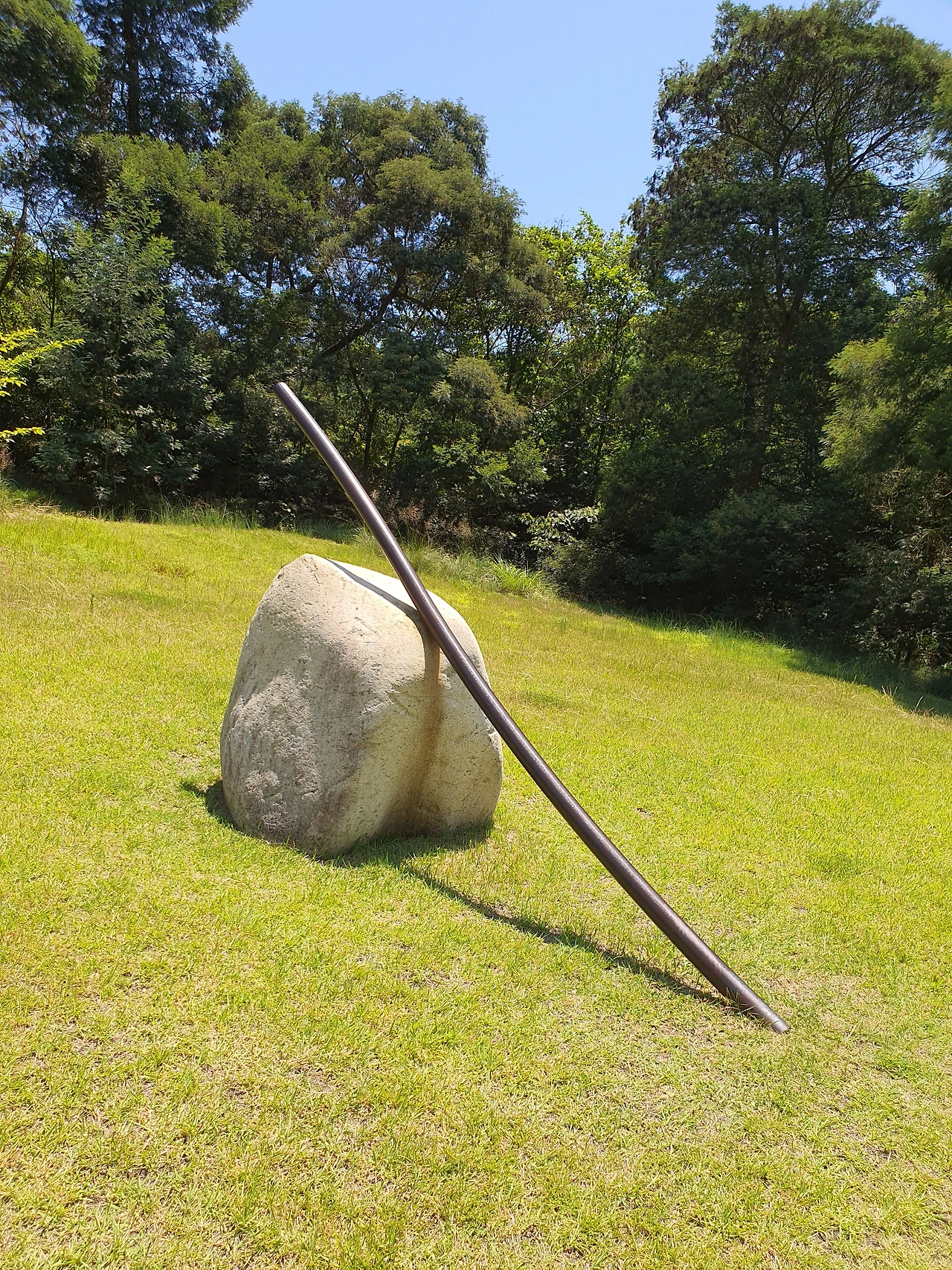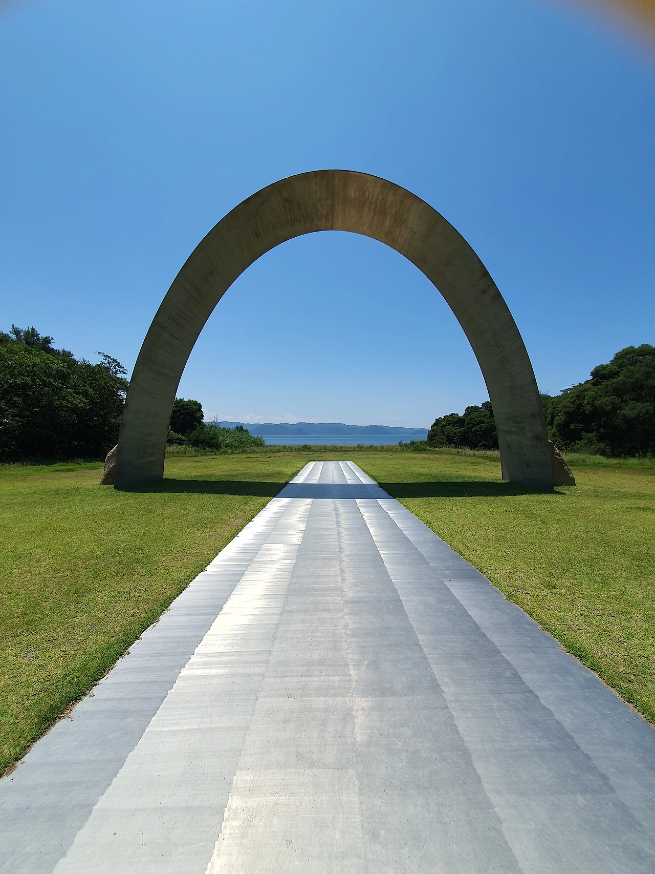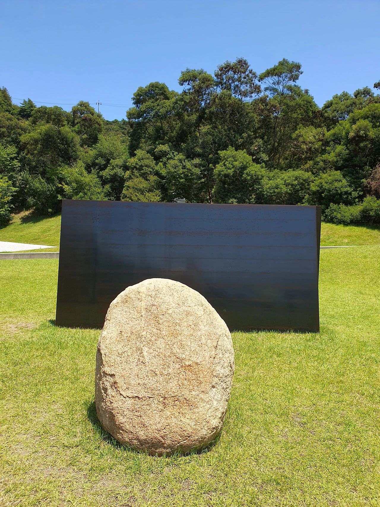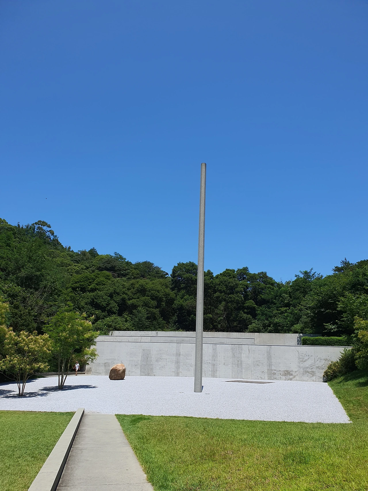 언덕을 따라 내려가면 거대한 기둥이 제일 먼저 눈에 띈다. 그 옆에 커다란 돌이 덩그러니 놓여있다. 이우환 미술관 역시 안도 다다오가 설계했다.