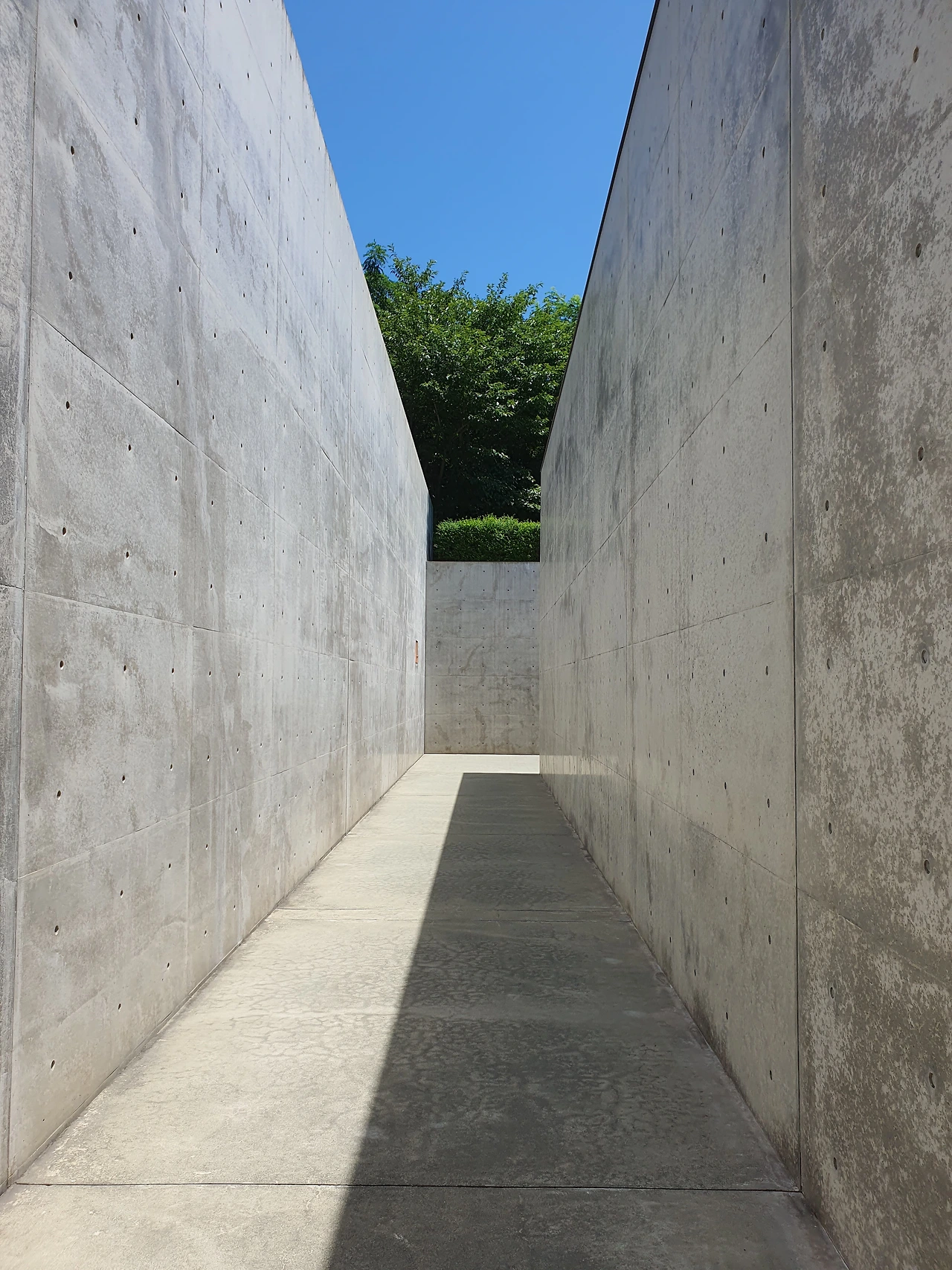 안도 다다오의 노출 콘크리트 미로를 지나면 입구가 보인다