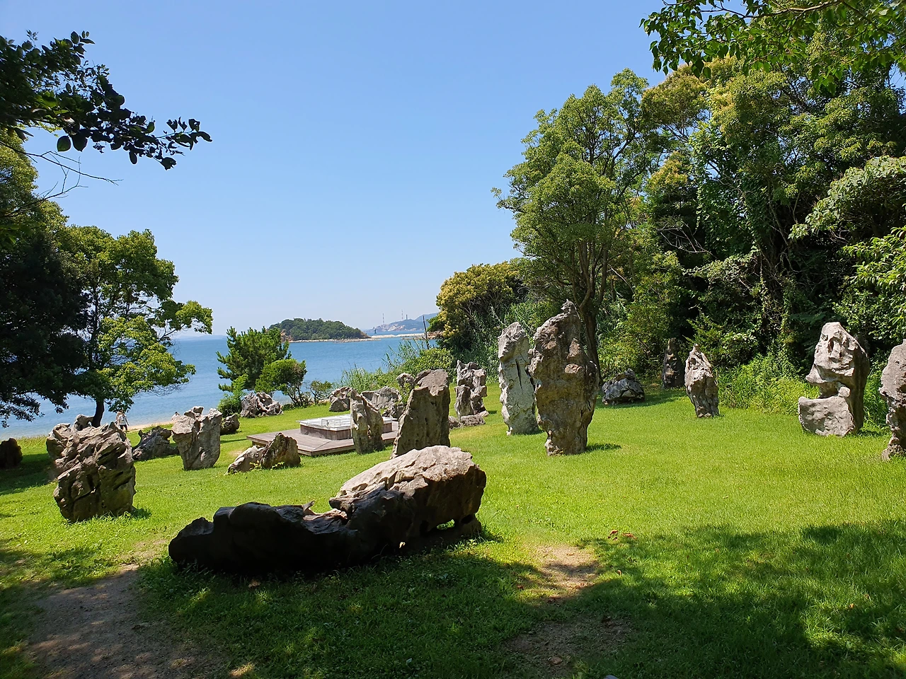 작품의 이름은 <Cultural Melting Bath>로 풍수지리에 영향을 받았다. 실로 배산임수의 영향을 받은 것인지 욕조 뒤에는 숲이 있고 욕조 앞에는 바다가 있었다. 인간과 서양의 물건인 욕조가 자연과 동양의 공간인 나오시마 풀밭에 위치한 것이 실로 문화적으로 융합된 상황이 아닌가. 비밀의 정원에 나오는 비밀 아지트 같은 곳이다.