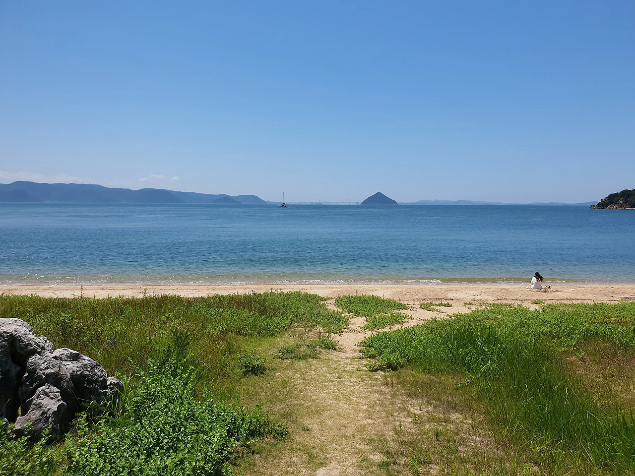 욕조 앞으로 조금만 걸어 나오면 해변이 나온다. 프레임 안에 하얀색 셔츠를 입고 긴 생머리의 여성이 사색하고 있는 모습이 영화 속 한 장면 같았다. 왠지 모르게 영화 <타오르는 여인의 초상>이 생각났다. 시공간이 멈춰 있는 곳.