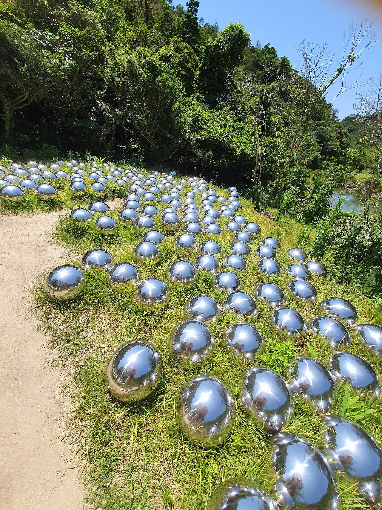 알고 보니 쿠사마 야요이의 작품으로 <나르시스 정원>이다.처음에는 미러볼이 연못 위랑 풀밭에 오밀조밀 모여 있는 것이 이질적으로 느껴졌다. 자연에 반짝반짝 광이 나는 미러볼이라니. 어찌 보면 쿠사마 야요이의 호박 그림에 있는 점들이 미러볼로 형상화된 느낌이 들었다.