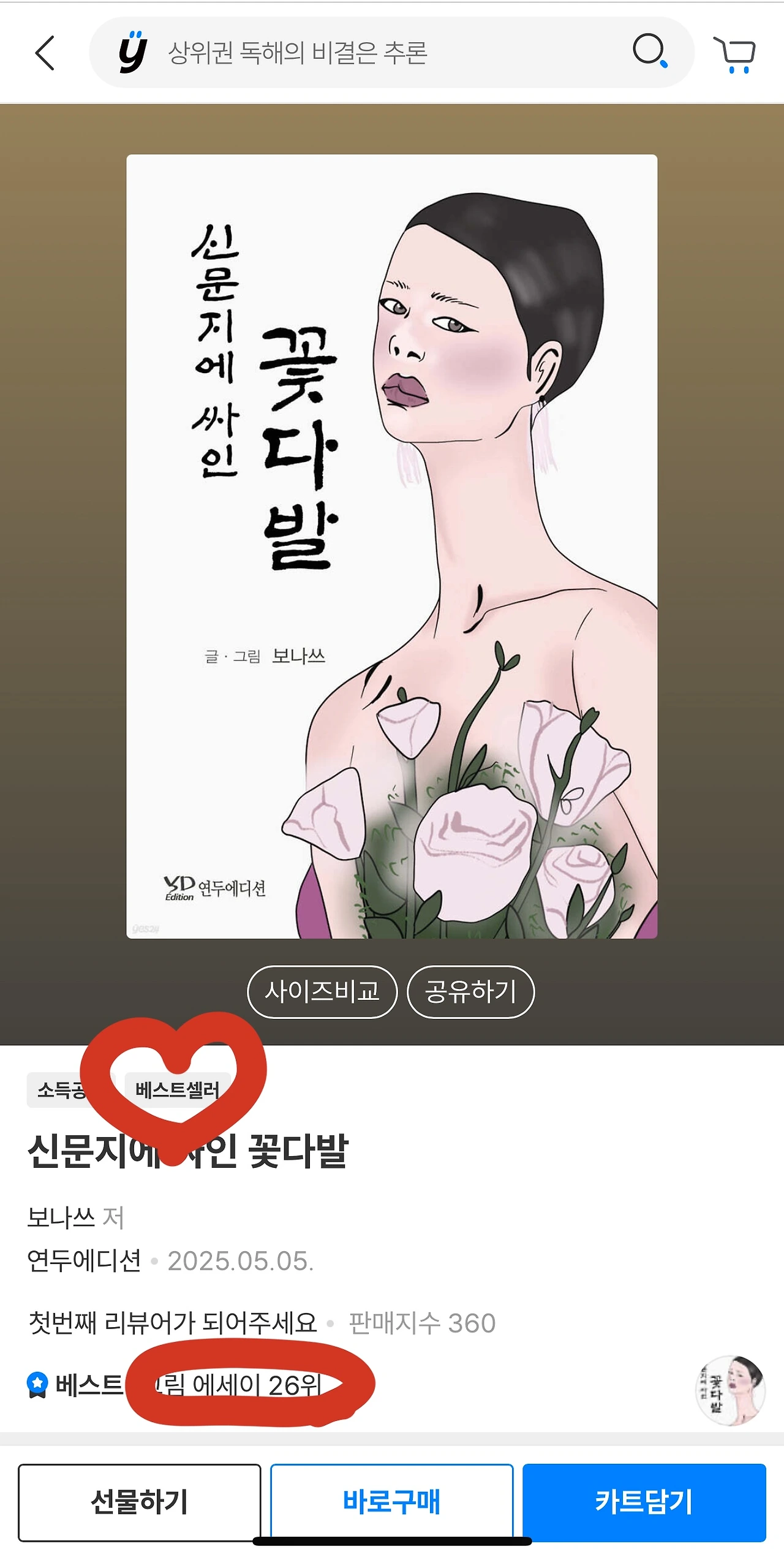 ‘아무렴 어때’가 예스24 분야별 베스트셀러가 되었을 때는 생각했습니다. 7주 동안이나 나의 첫 책을 붙들어준 건 내 글이라기보다 독자의 바람이었다는 것을.
