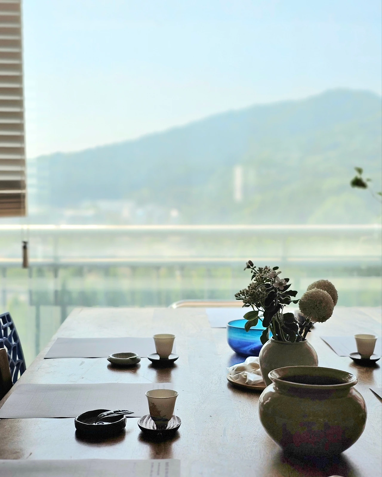 차 한 모금에 산뷰를 감상하는 게 다름아닌 신선놀음이라고 이야기하시곤 하지요.
