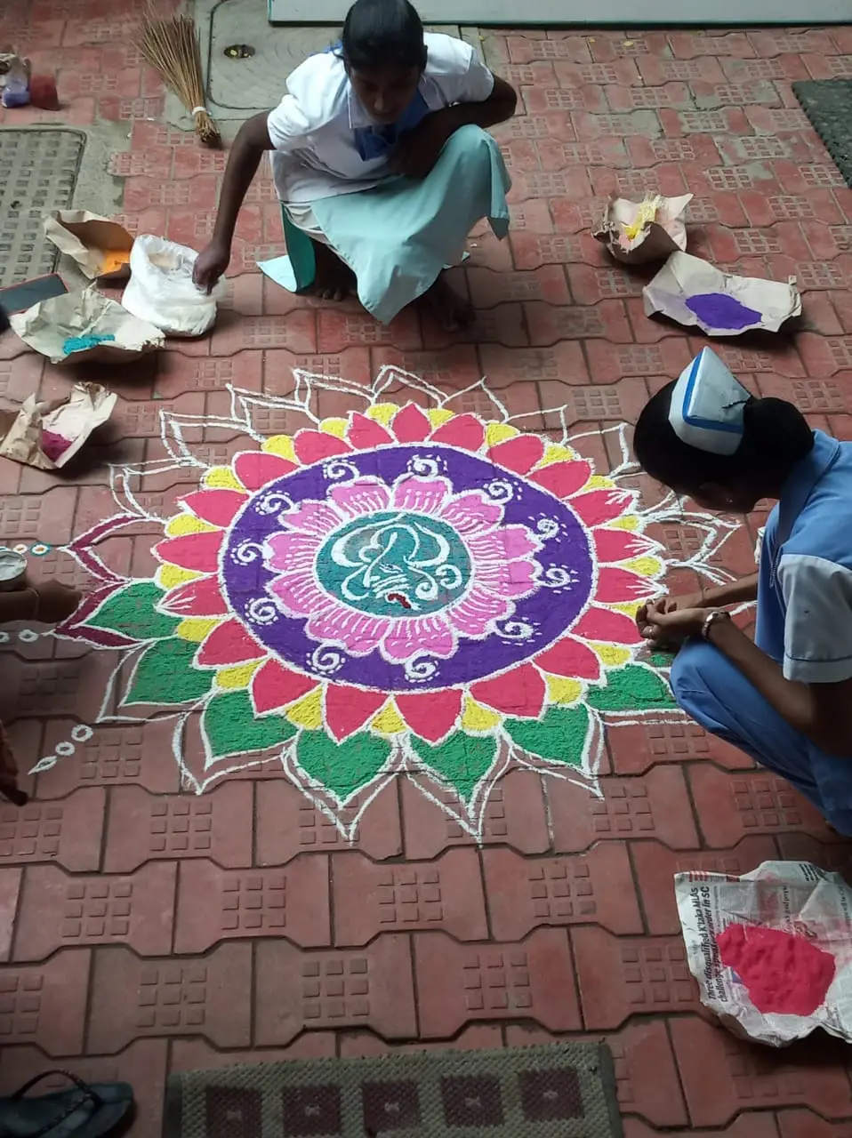 인도에서는 매일 아침 집앞에 꼴람(랑골리)를 그린다.