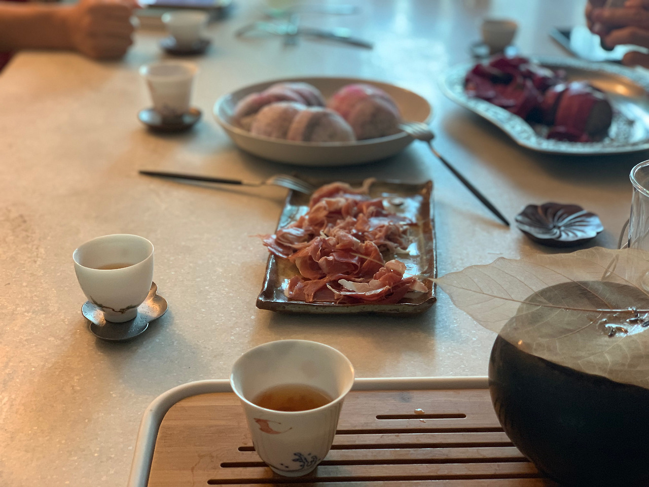 용과와 하몽, 정산소종의 합은 아주 좋았다. 정산소종은 축축하게 비가 오는 날과 참 잘 어울리는데, 추석 당일처럼 맑은 하늘에도 좋았다. 가족들이 모두 둘러앉아 마시는데, 뭔들 맛이 없으랴. 여섯 입이 쉴새없이 움직인다. 수다떨랴, 차 마시랴, 티푸드 먹으랴.