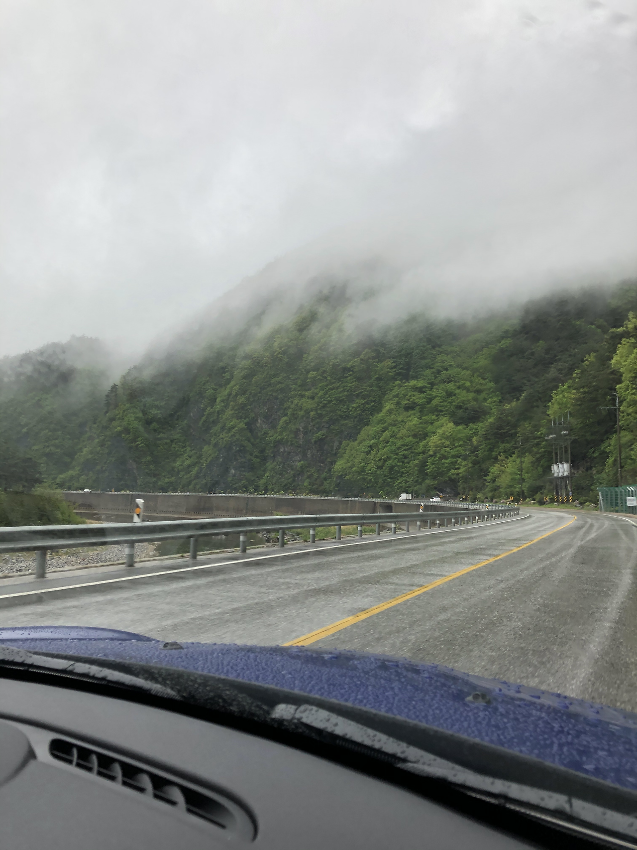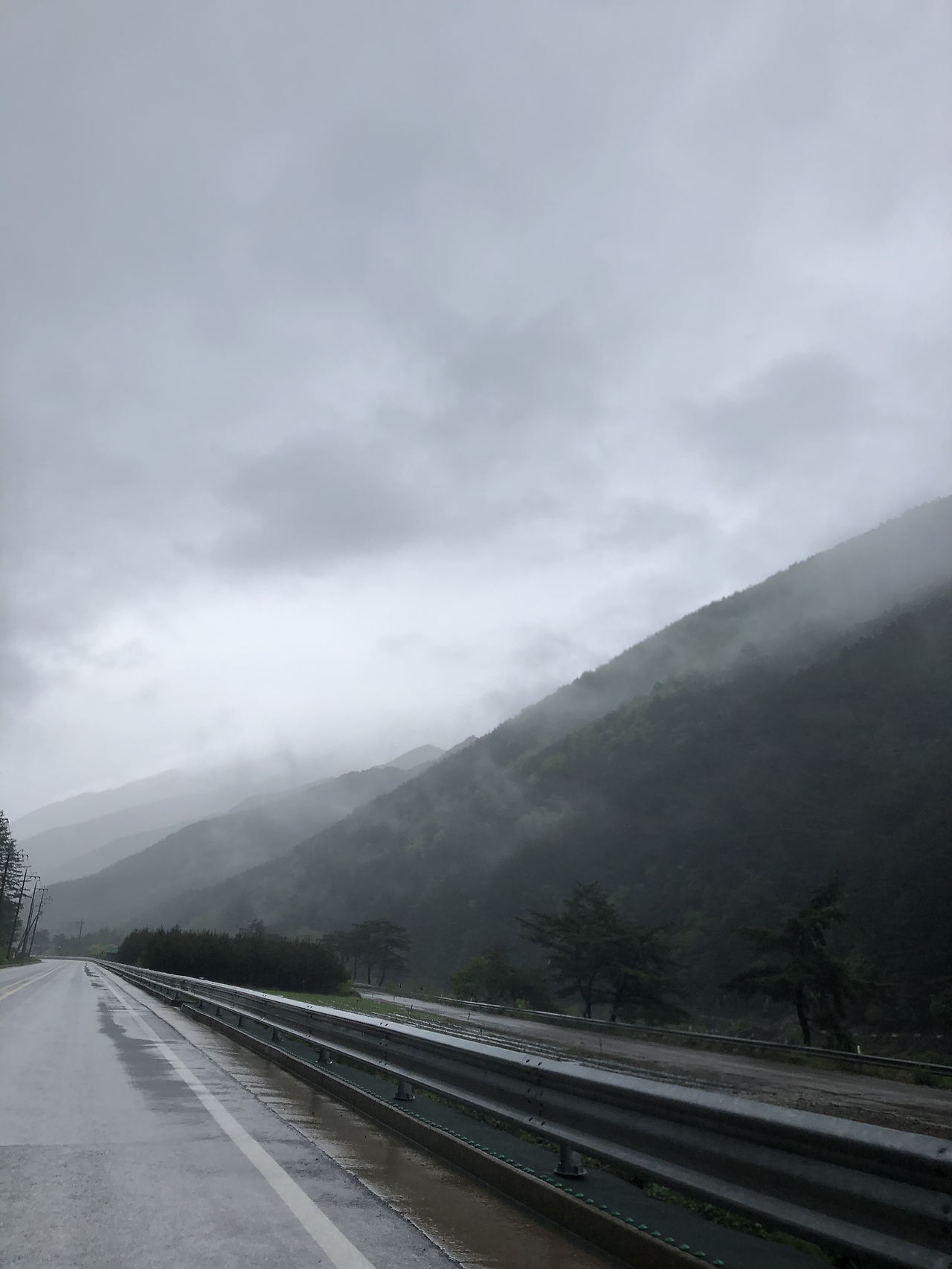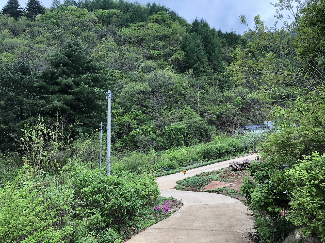 살짝 흐렸던 첫날 이후 점점 비와 안개가 걷히니 무르익지 않은 연두색과 연한 초록색이 장관을 이루고 있었다. 파란 하늘과 초록 산! 너무 당연한 풍경이지만 정말 너무 그리웠다. 그냥 강원도 산골짜기를 구석 구석 다니면서 산만 봐도 좋았다.