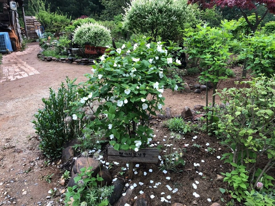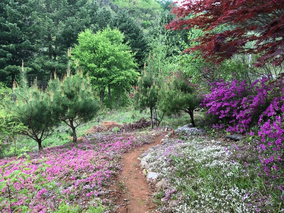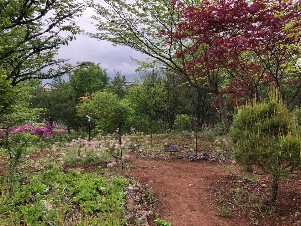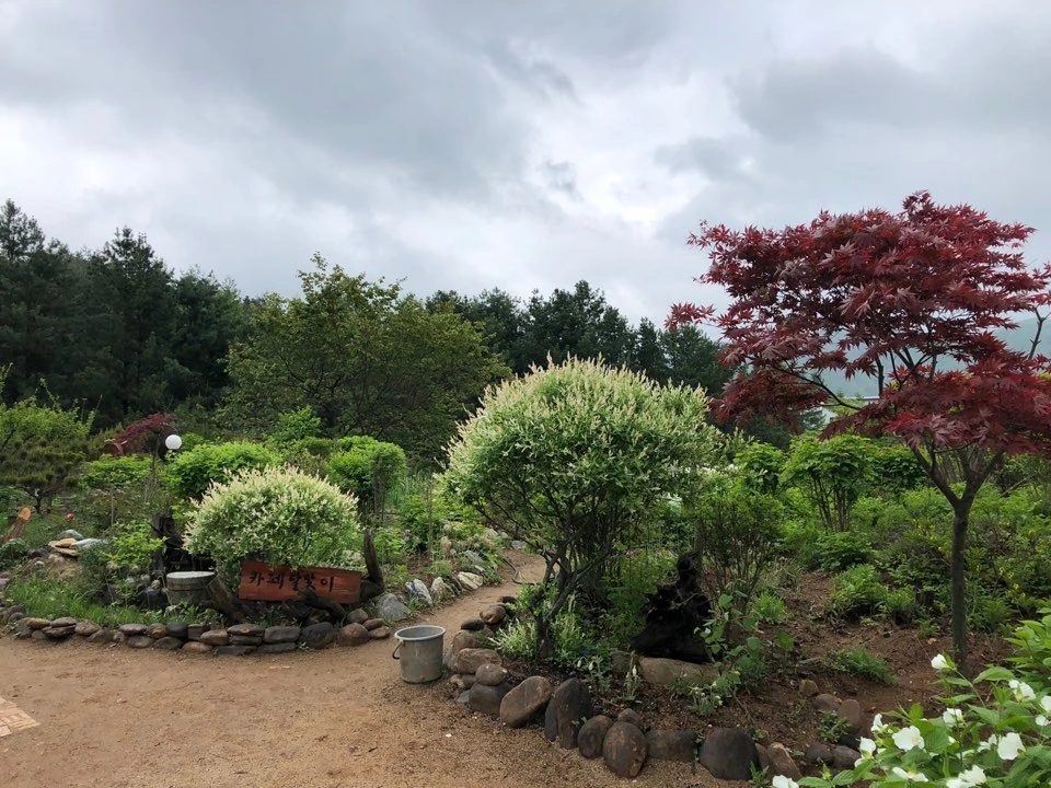 가는 길부터 정말 꼬불꼬불했다. 평창으로 향하는 고속도로에서 빠져서도 30분가까이 들어갔어야 했다. 그러나 주인 부부가 정성을 들여서 가꾼 야생화정원과 직접 만드신 강원도식 가옥에서 직접 따서 말린 꽃차를 얼마나 자주 마셔볼 수 있을까를 생각하면서 열심히 들어갔다. 운전이 익숙하지 않은 사람이라면 진짜? 여기를 올라간다고? 하는 구간이 두어개 있었다.. 거기다 큰 SUV는 정말 아슬아슬하게 올라갈 것 같은 꼬불꼬불 시골길... 오르고 올라 평창 자생식물원에 도착했다.