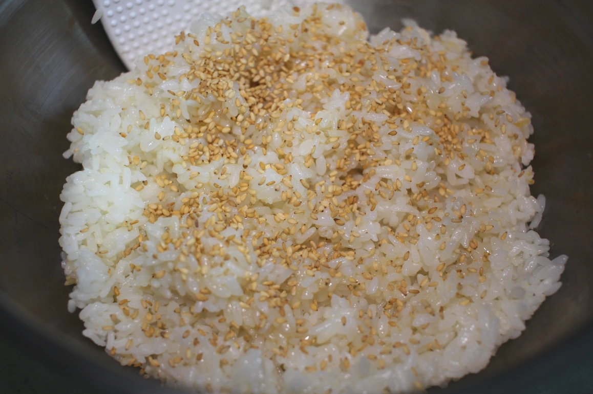 * 밥 밑간: 통참깨 톡톡톡, 참기름 2T, 식초 1T.