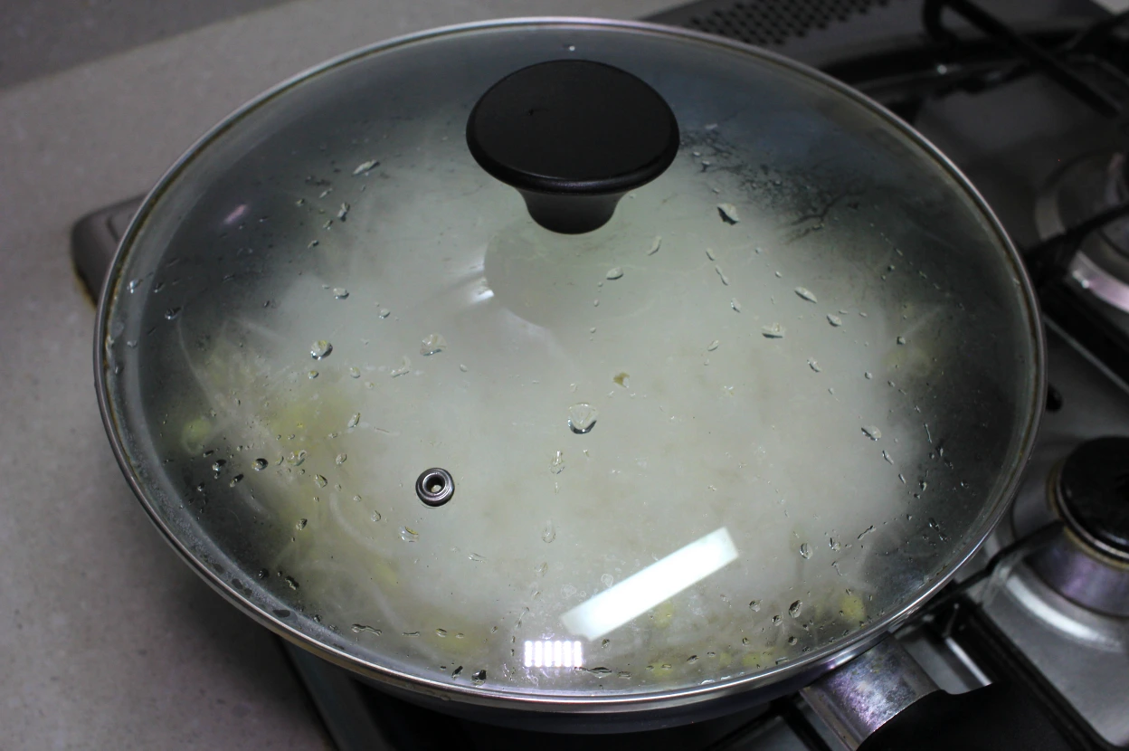 3. 뚜껑을 닫고 중불에서 4-5분 뒤 (콩나물 냄새가 사라지고 나면), 다시 약불로 줄여 4-5분간 쪄준다.
