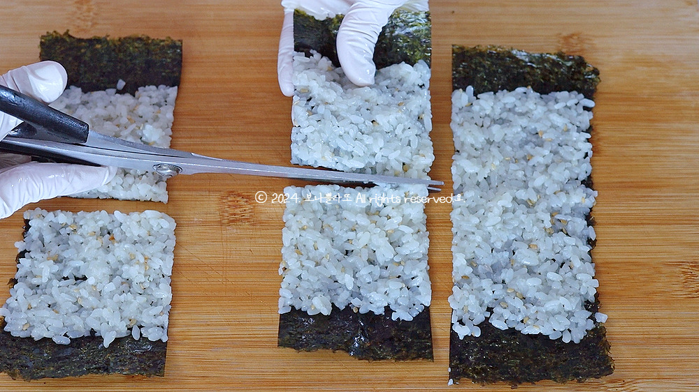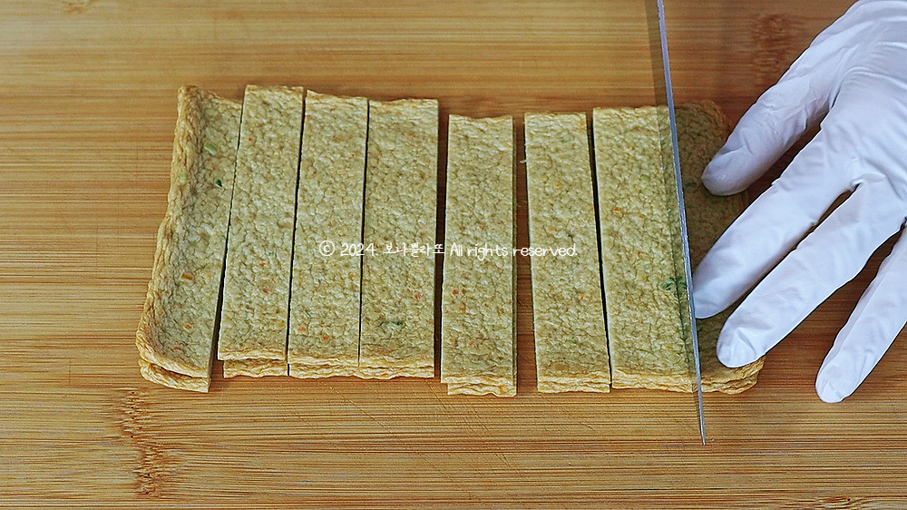 가로로 3등분 + 세로로 2등분 해 총 6조각으로 잘라 돌돌 말아준다.
