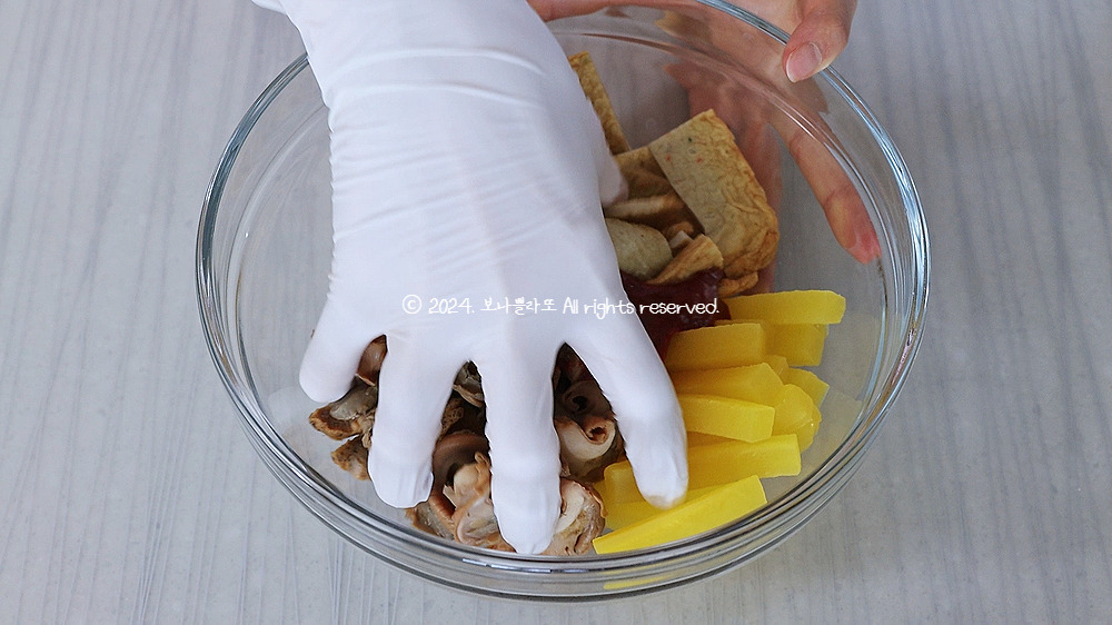 준비한 재료와 양념을 한데 넣고 잘 버무려준다.