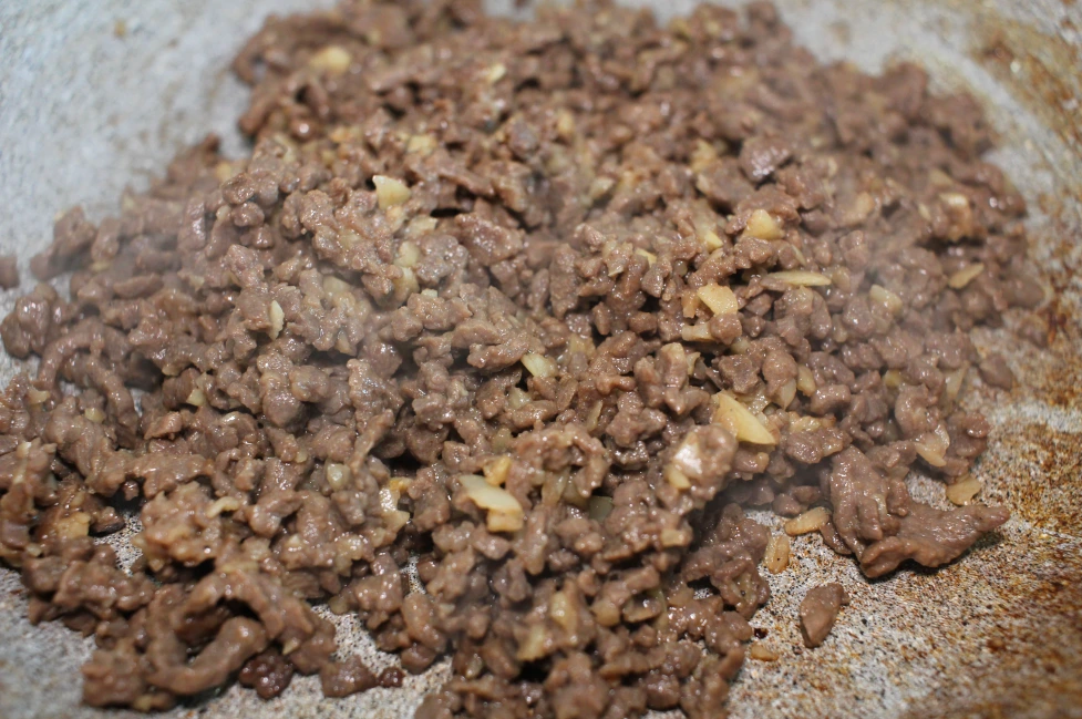 1. 올리브유를 살짝 두른 웍에 후추 톡톡, 맛술 1T, 다진 마늘 1t, 진간장 1T, 설탕 1t를 넣고 밑간 해둔 다진 소고기 (200g)를 노릇노릇하게 볶아준다 (수분기 없게 바삭 & 노릇하게 구워줘야 나중에 밥과 섞었을 때 질척이지 않고 고슬고슬하니 맛이 좋다).