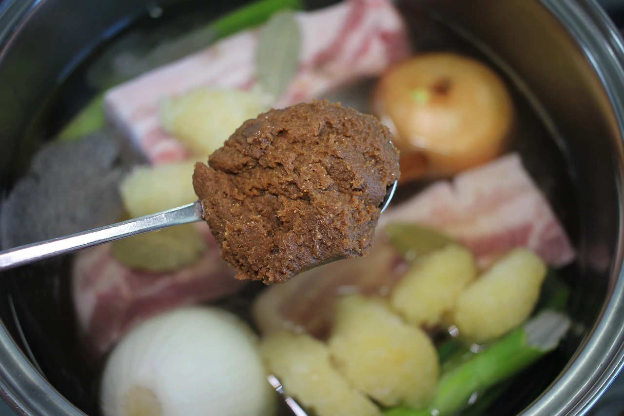 수육을 끓일 때 고기의 잡내를 없애기 위해 넣는 재료들은 집집마다 천차만별, 그야말로 각양각색이다. 커피, 된장, 간장, 맥주에 쌍화탕까지. 그 수많은 재료들 속에서, 나는 된장 파다. 된장을 선두로 부가적인 재료들을 첨가해준다. 여러 가지 조합으로 만들어보았지만, 현재까지는 이보다 나은 조합을 찾지는 못했다. 된장의 역할은 주로 묵직하게 고기를 다스리며 간을 비롯해 전체적인 맛의 균형을 잡아준다. 예나 지금이나 된장은 참 여러모로 쓸모가 많은 녀석이다. 이것저것 요리에도 넣어 먹고, 심지어 벌에 쏘인데도 바르곤 했다니 말이다. 이런 된장. 아무튼 지간에 된장은 맛은 물론이거니와 잡내도, 아픔도, 나쁜 건 다 때려잡아주는 고마운 녀석임이 확실하기 때문에라도 나는 된장을 꼭 넣어 만든다.