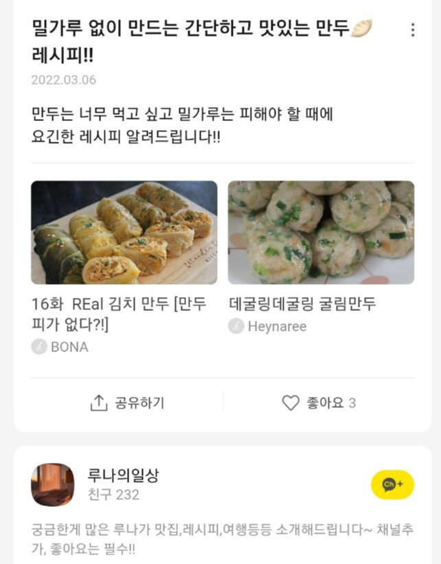아래와 같이 현재 불특정 다수의 카카오 뷰 채널에 제 글을 아무런 동의 없이, 무단으로 본인이 생성한 정보인 것처럼 링크를 걸어 영리를 위해 활용 중인 분들의 채널을 캡처하였습니다.