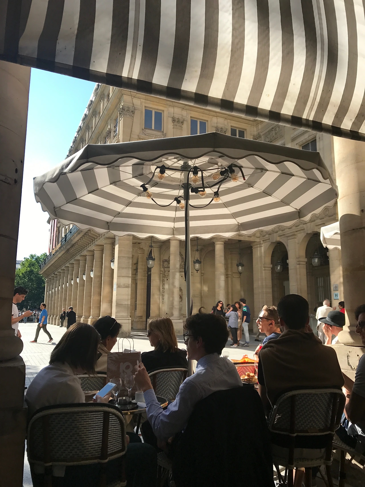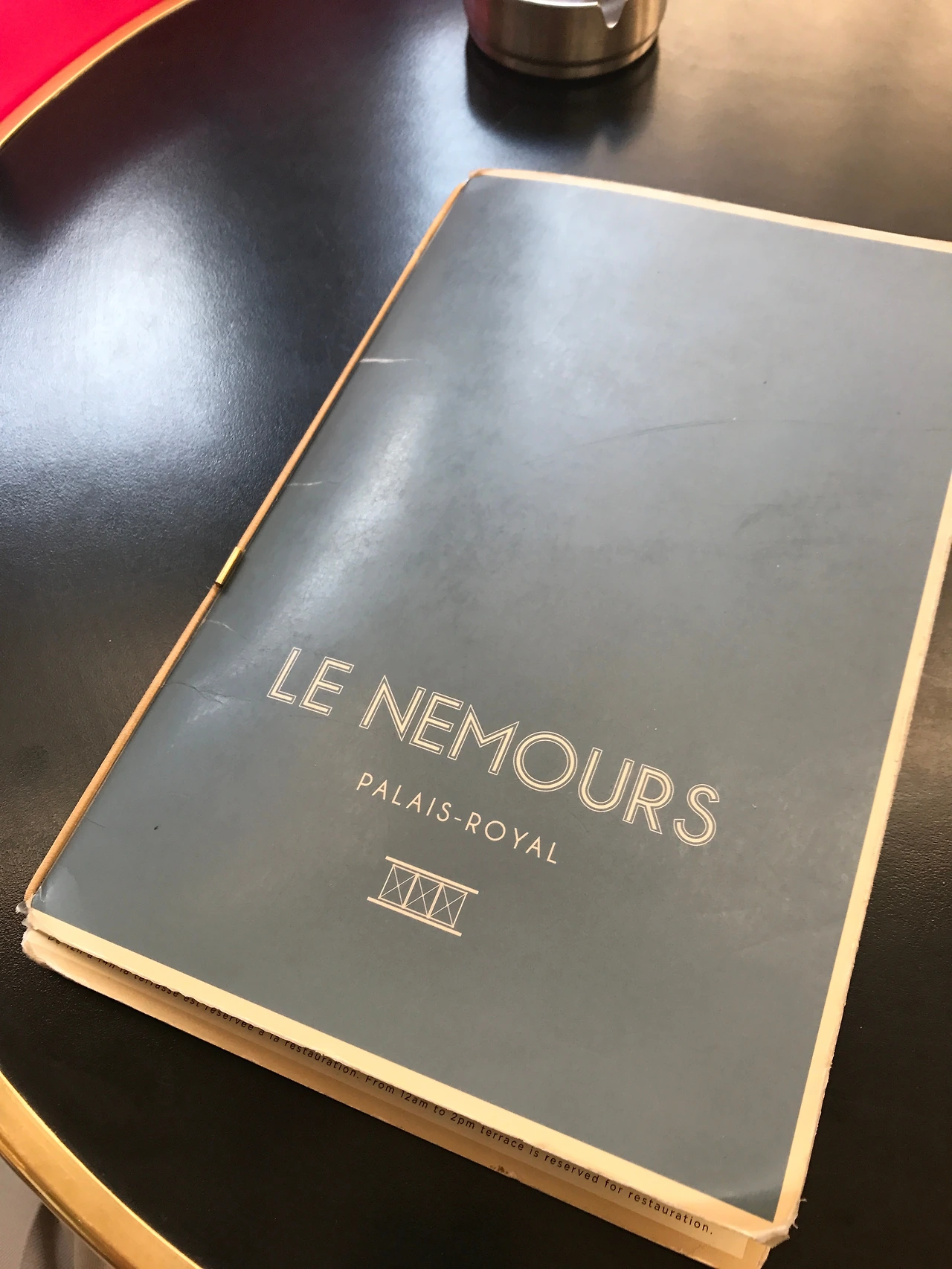 그가 소개해준 카페는 팔레 루아얄에서 가까운 'Le Nemours'. 카페 키츠네 의자에 걸터앉아 거만하게 턱으로 방향을 가리키며 가보라고 한 곳이다. 이 근처에서 쇼핑하다가 한 잔 하기에 좋다며. 꽤 유명한 듯, 빈자리가 없을 정도로 꽉 찼다. 입구에서 북적거리는 카페를 보며 잠시 고민했지만 쉬어가기로 했다. 서버가 안내해주는 자리에 앉으니 그런대로 앞자리여서 다행이라고 생각한 찰나, 앉은 걸 바로 후회하게 됐다. 이 카페는 흡연자 천국이었다. 앞에서 뒤에서 옆에서 피워대는 담배연기로 매우 난처한 상황에 빠져버렸다. 파리에서 나름 긴 시간을 보내서 이젠 익숙해진 것인지, 비흡연자였던 그가 이런 곳을 추천했다는 게 신기했다. 아님 오랜만에 한방 먹은 건가...