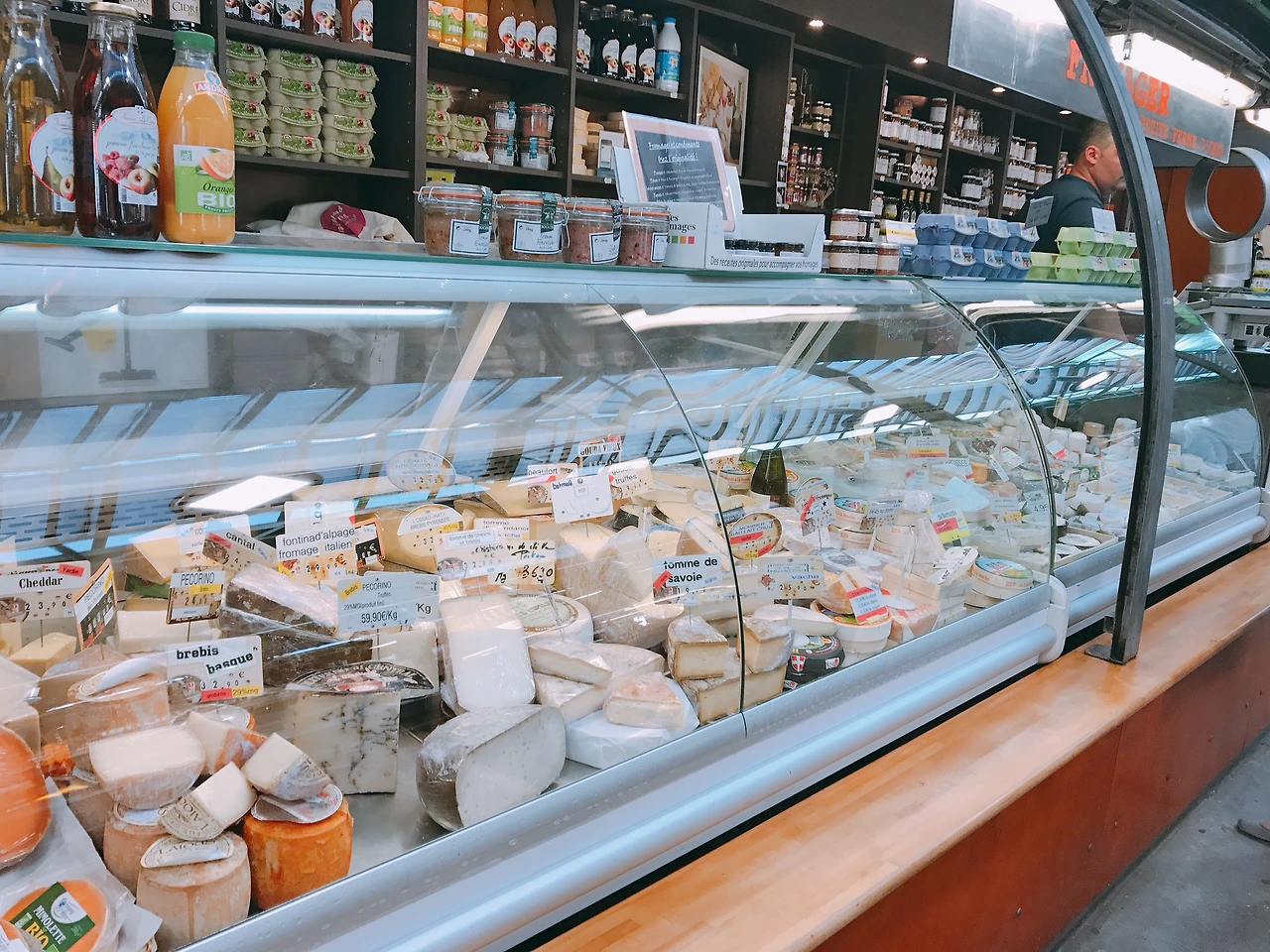 먼저 가까운 Enfants Rouges 시장으로 향했다. 아주 자그마한 시장이다. 커피나 간단한 식사를 파는 곳도 있다. 치즈가 수북이 쌓여있는 매장도 보인다. 파리에 오면 치즈와 버터에 눈이 돌아간다. 서울보다 훨씬 싸고 종류도 많고. 유통기한이나 반입에 문제만 없다면 몇 톤이고 이고 지고 들어오고 싶다. 어렸을 때엔 치즈를 별로 좋아하지 않았는데, 사람 입맛은 계속 변하는 것 같다. 와인을 마시기 시작하고서부터는 냉장고에 치즈는 계속 쟁여두게 된다.