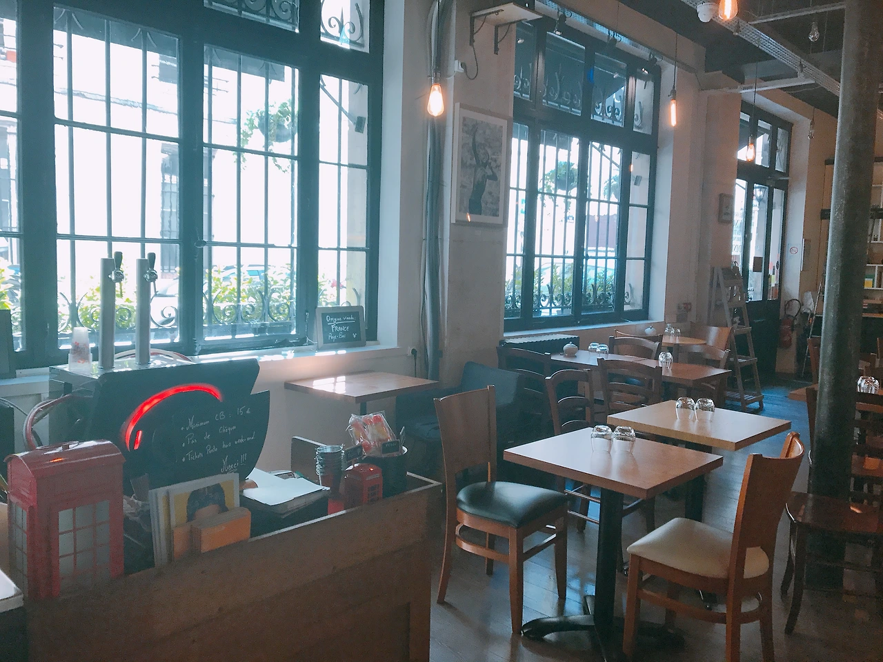 이번엔 내가 S를 이끌었다. 요 며칠 마레의 거리를 걸으며 눈도장 찍어놓았던 'T'cup'이다. 막상 들어가서 보니 파리보단 런던 분위기의 브런치 카페랄까. 내부가 생각보다 널찍해서 놀랐다. 곳곳에 아기자기한 그림과 오브제들이 있는데, 프렌치 감성과 영국 뉘앙스가 묘하게 뒤섞인 듯한 느낌이었다.