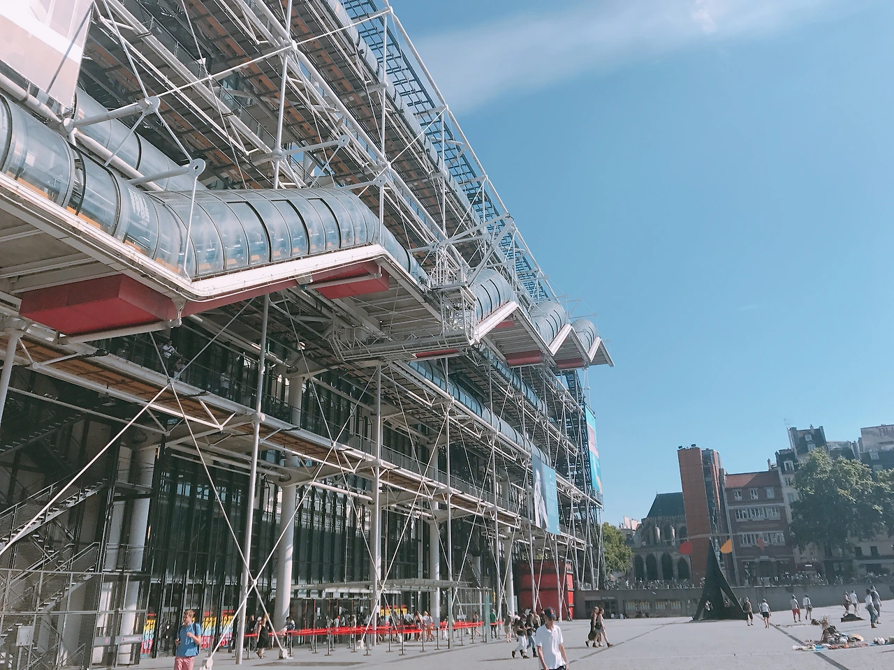 다음 목적지는 조르주 퐁피두 센터. 이때가 이번 파리 여행 중 기록적으로 더웠던 순간으로 기억한다. 퐁피두 센터 광장에 도착했을 땐 정수리에 계란을 올려놓으면 익어버릴 수도 있겠다고 생각할 정도였으니까. 외부에 난 계단을 오를 때엔 숨이 턱턱 막혔다. 이게 유럽의 여름이라는 거구나, 실감했다.