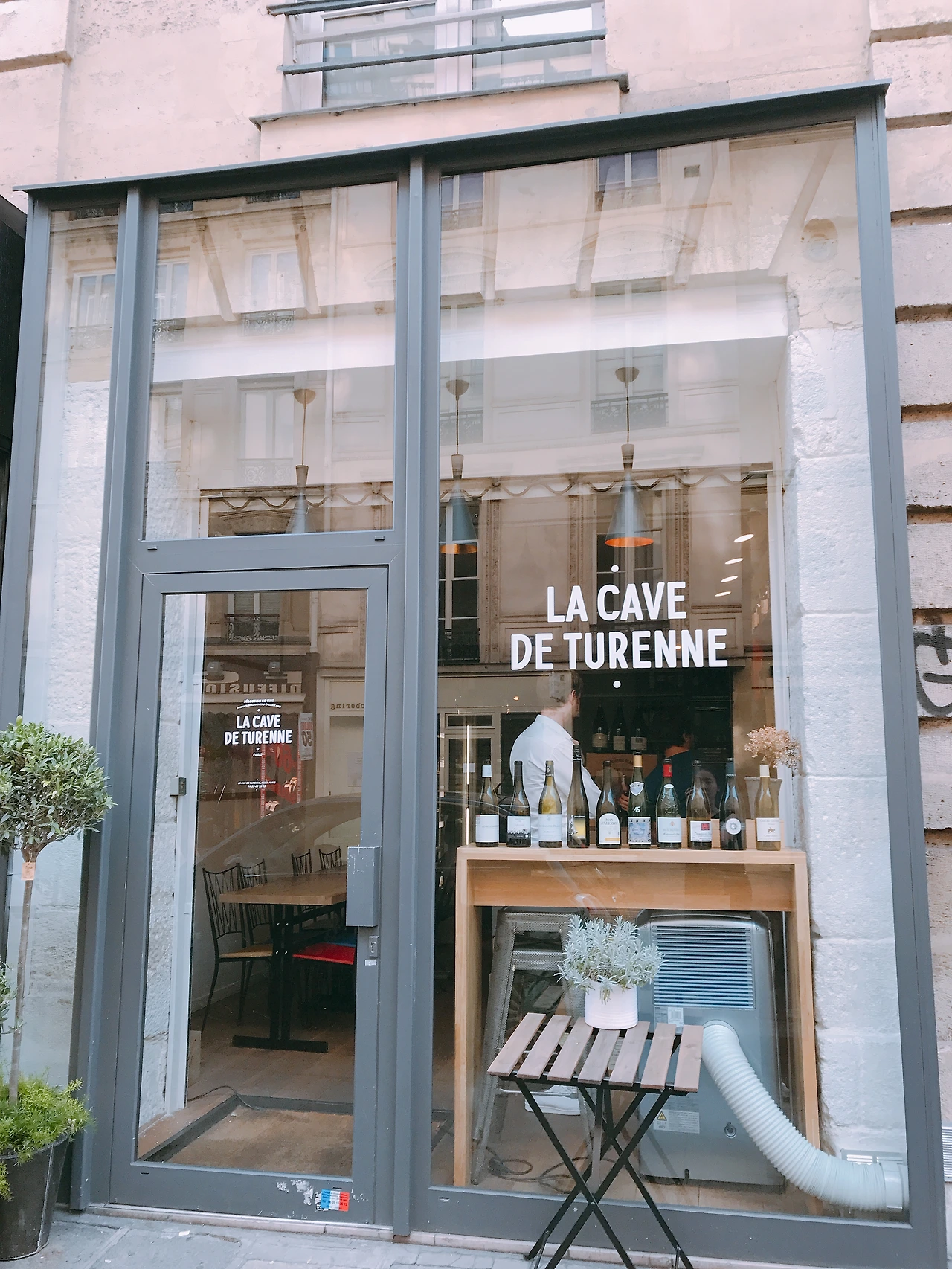 글을 멈추고 키보드를 닫으니 어느새 저녁시간이다. 하루 종일 여기서 콕 박혀 있었다. 생각이 정리되지 않은 듯 정리된 느낌. 그래, 이것으로 되었다. 순간 강한 '허기'가 느껴진다. 와인에 대한 허기다. 뭔가를 먹고 마셔야겠어. 비앤비가 있는 마레 쪽으로 향했다. 가는 도중 발견한 와인바 'La Cave de Turenne'. 와인을 한 병 사서 숙소에서 따 마실까. 문을 열고 들어가니 한 커플이 와인을 고르고 있고, 매니저는 제 할 일을 하고 있다. 천정까지 올라간 선반엔 와인들이 꽤 DP 돼 있다. 여기도 내추럴 와인이 대부분인 듯하다.