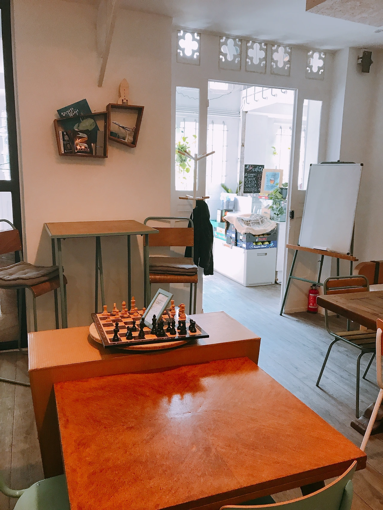 장소도 미리 봐 뒀다. 소르본 대학 근처에 위치한 'Nuage Cafe'로, 구글맵에는 공동 작업 공간이라고 설명돼 있다. 우리나라에도 꽤 확산된 co-working space와 비슷한 개념일 것 같다. 시간당 사용료를 내고 커피는 물론 안에 비치된 빵이나 시리얼, 간식 등을 먹을 수 있다. 추가 비용이 있는 음료수도 있다. 두 개 층으로 돼 있어 장소가 넓고 혼자 스터디할 수 있는 공간, 여럿이 미팅할 수 있는 공간이 있다. 체스를 두거나 게임할 수 있는 곳도 있다. 전반적으로 아기자기하고 cozy 한 공간. 무엇보다 조용해서 마음에 든다.