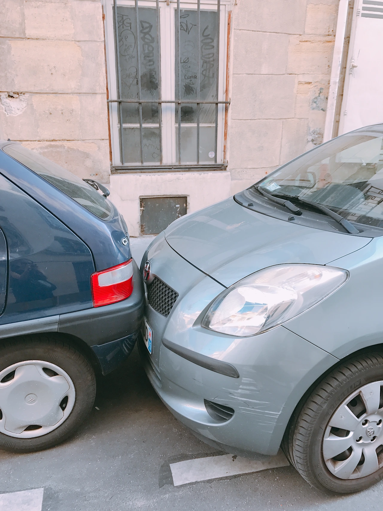 화이트 와인 한 잔을 가뿐하게 비우고 일어섰다. 매니저가 자리에 없어 조금 더 보태 현금을 테이블에 두고 나왔다. 그렇게 길을 걷다 갑자기 달려가 사진을 찍게 만든 그림. 이런 게 파리의 주차라니. 앞차 엉덩이와 뒤차 코가 맞붙어 입맞춤을 하고 있다. 차체 옆에 거칠게 난 흠집은 아무렇지도 않은가 보다. 파리 길거리를 걷다 보면 이런 모습을 심심찮게 발견하곤 했다. 아, 이탈리아에서 더 자주 목격하긴 했다. 앞뒤 차를 쾅쾅 부딪혀 가며 차를 빼는 터프한 남부 이탈리안이 퍼뜩 떠오른다. 차에 조금이라도 흠집 날까 두려워 조심하는 우리나라 운전자들과는 참 다르다.