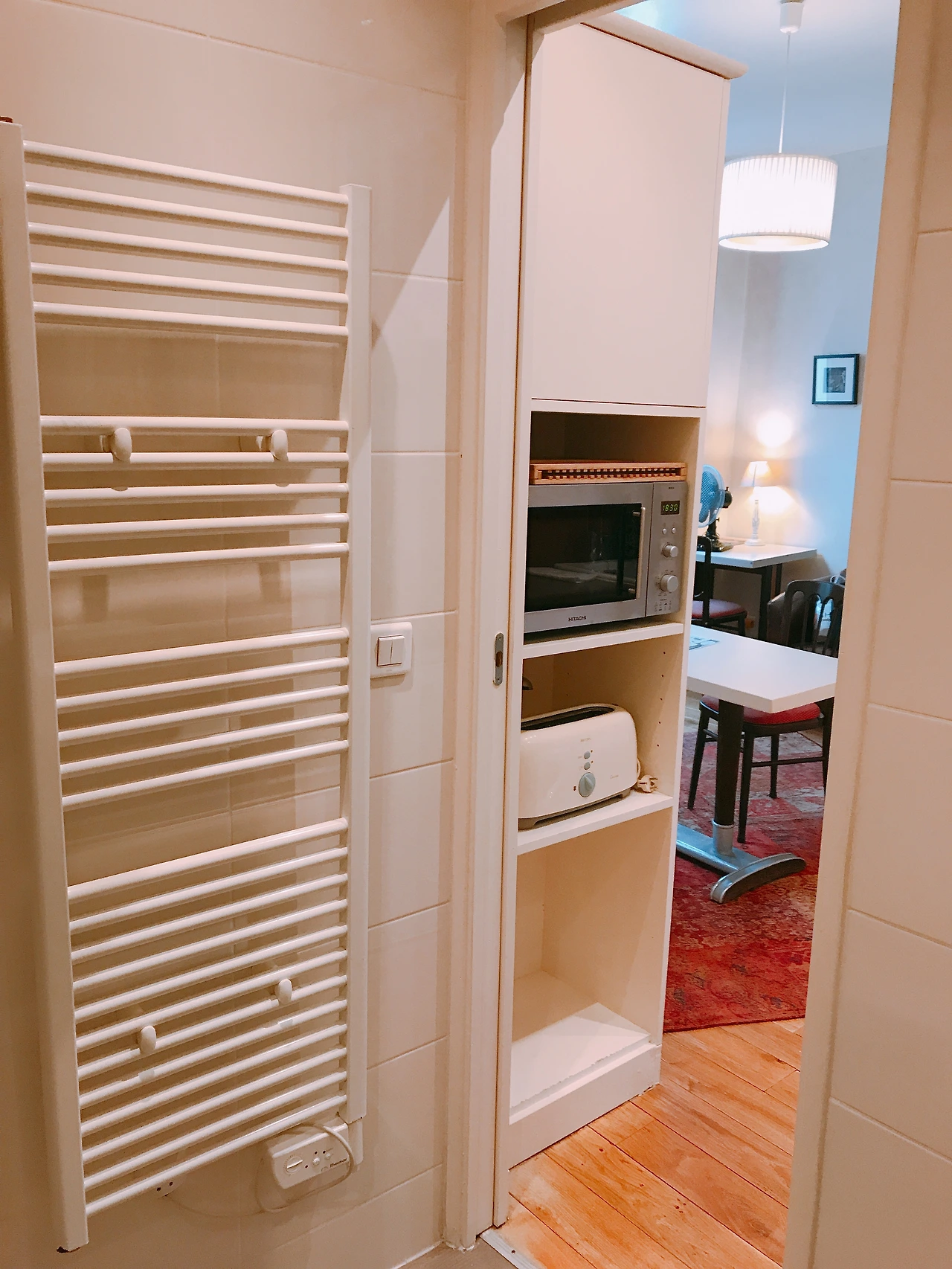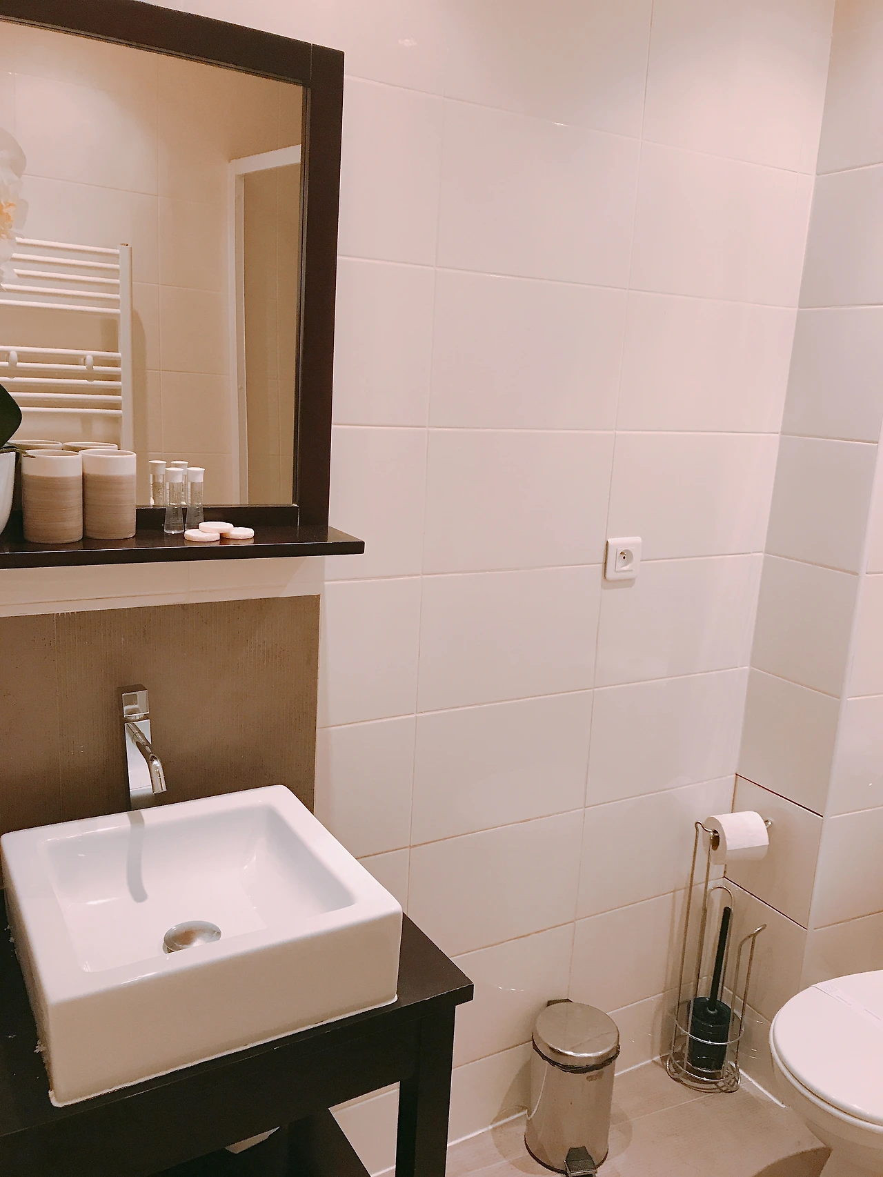 스튜디오 전체 크기에 비해 욕실이 넓어서 샤워하고 준비하기 편하다. 휴지와 수건도 넉넉히 준비돼 있다. 파리에는 화장실에 수건걸이가 있는데, 온열 기능이 있어서 수건을 세탁해 말리기 좋다. 하지만 이번 여행에서는 나 혼자 쓰는 데다가 수건도 넉넉해서 따로 수건을 세탁할 필요는 없었다.