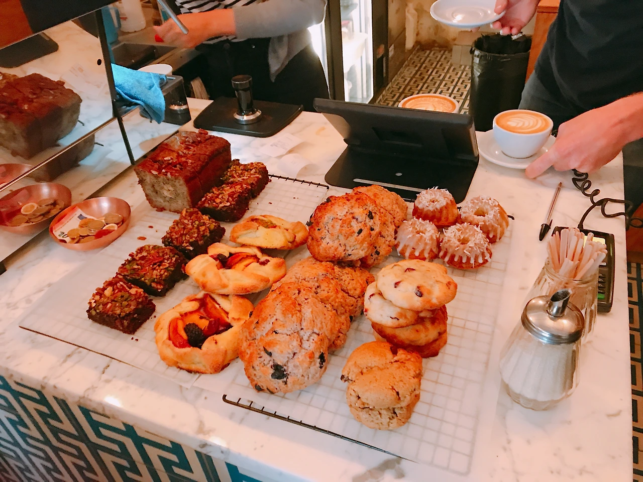 일행이 없는 나는 오른쪽 테이블 끝에 자리 잡았다. 내가 들어왔을 때만 해도 손님이 한 명밖에 없었는데 키보드를 꺼내 잠시 끄적이는 동안 어느새 카페 안이 다 차 버렸다. 슬쩍 보니 테이크아웃 커피를 주문하고 문밖에서 기다리는 사람도 꽤 된다. 힙 플레이스이었네, 이곳. 실내를 둘러보니 삼삼오오 자리 잡은 일행들 중 포치드 에그, 샐러드 등 브런치 메뉴를 먹는 사람들도 있었다.