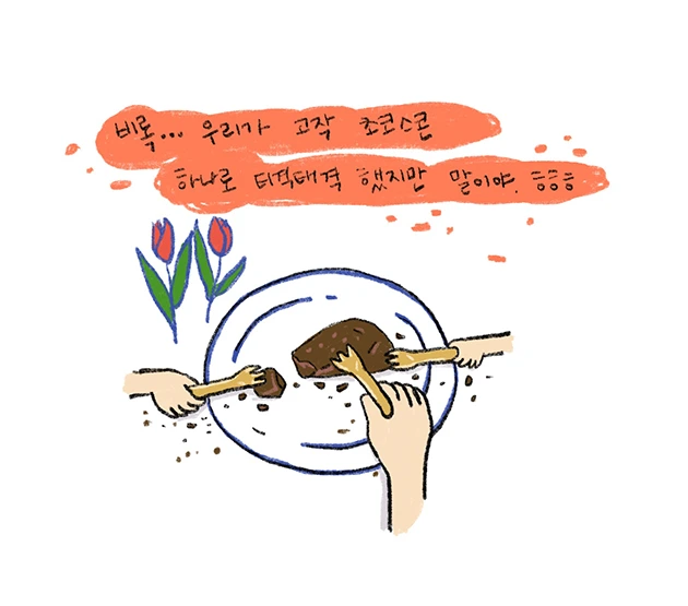 고작 초코스콘 하나를 두고 큰손, 중간손, 제일작은손 셋이서 티격태격 해댔지만,