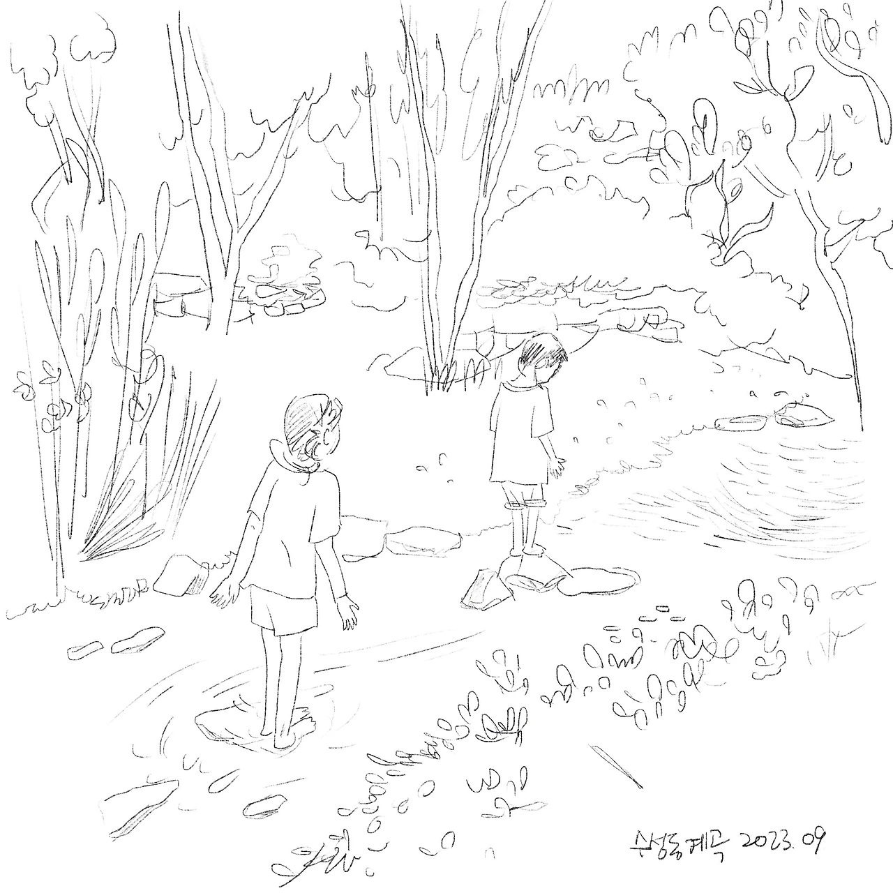 “누나! 우리 모래 던져서 앞이 안 보이게 하자!”.