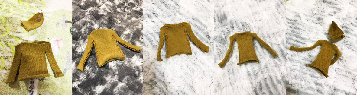 적당한 사이즈로 모자와 옷의 몸판이 되는 부분을 자르고, 소재를 뒤집어 바느질을 시작.