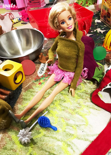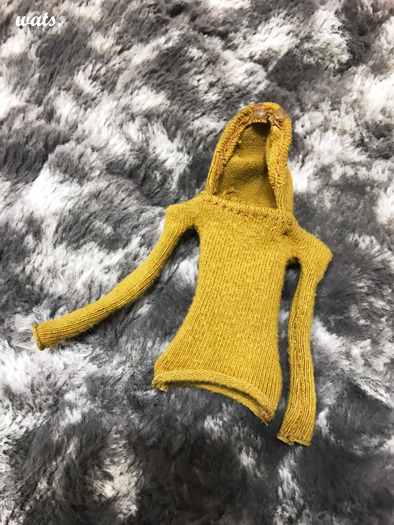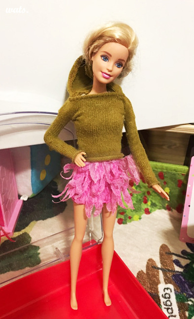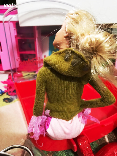 너무 타이트한 데다 바비의 손이 손가락을 펴고있는 상태라 니트를 입히는데 손가락 사이에 자꾸 걸리는 바람에 하마터면 찢길 위기에 여러 번 처했다.