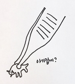 집게를 조심스레 잡아서 봉봉의 콧속으로 집게를 조심스레 넣으려는데!!!